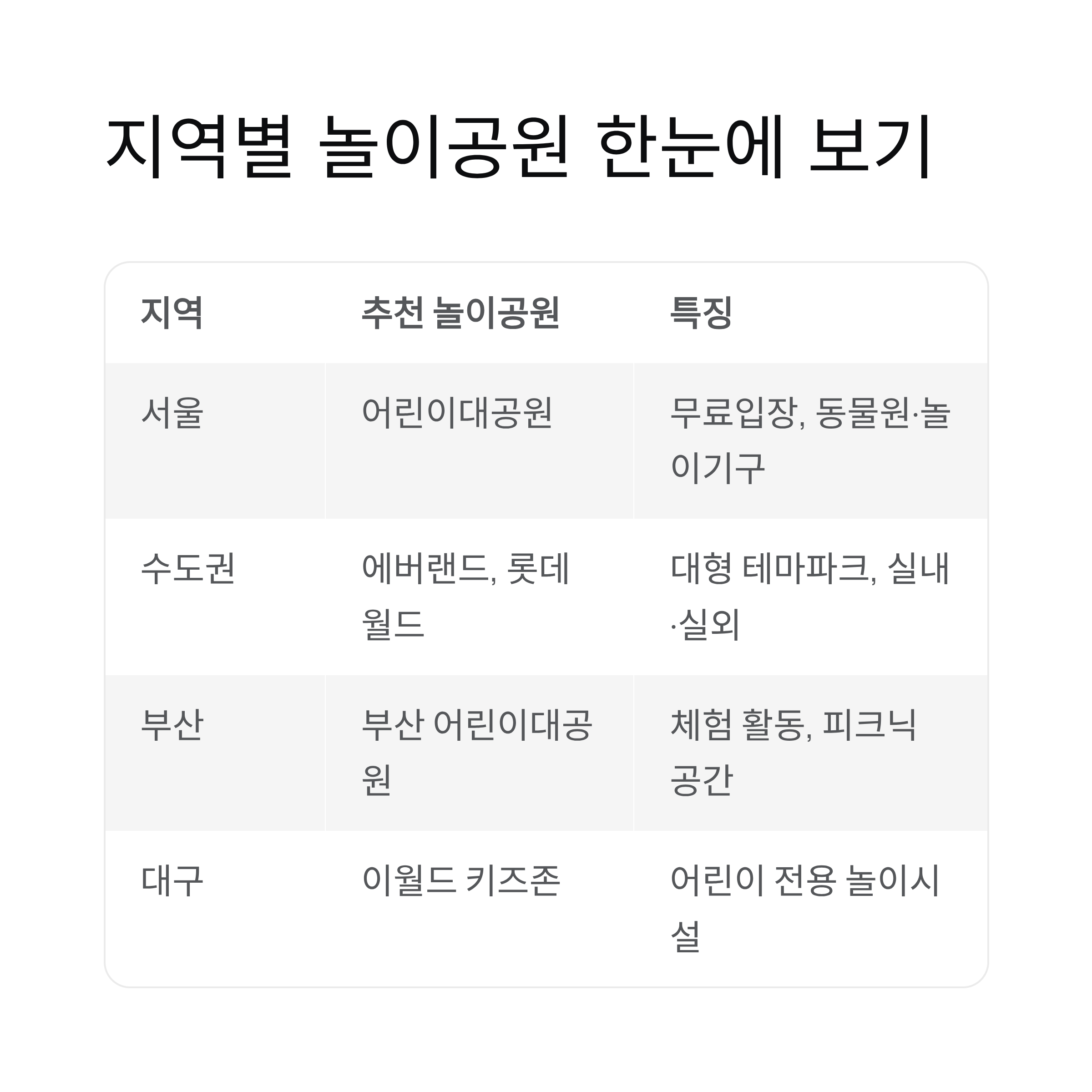 지역별 어린이 놀이공원 정리