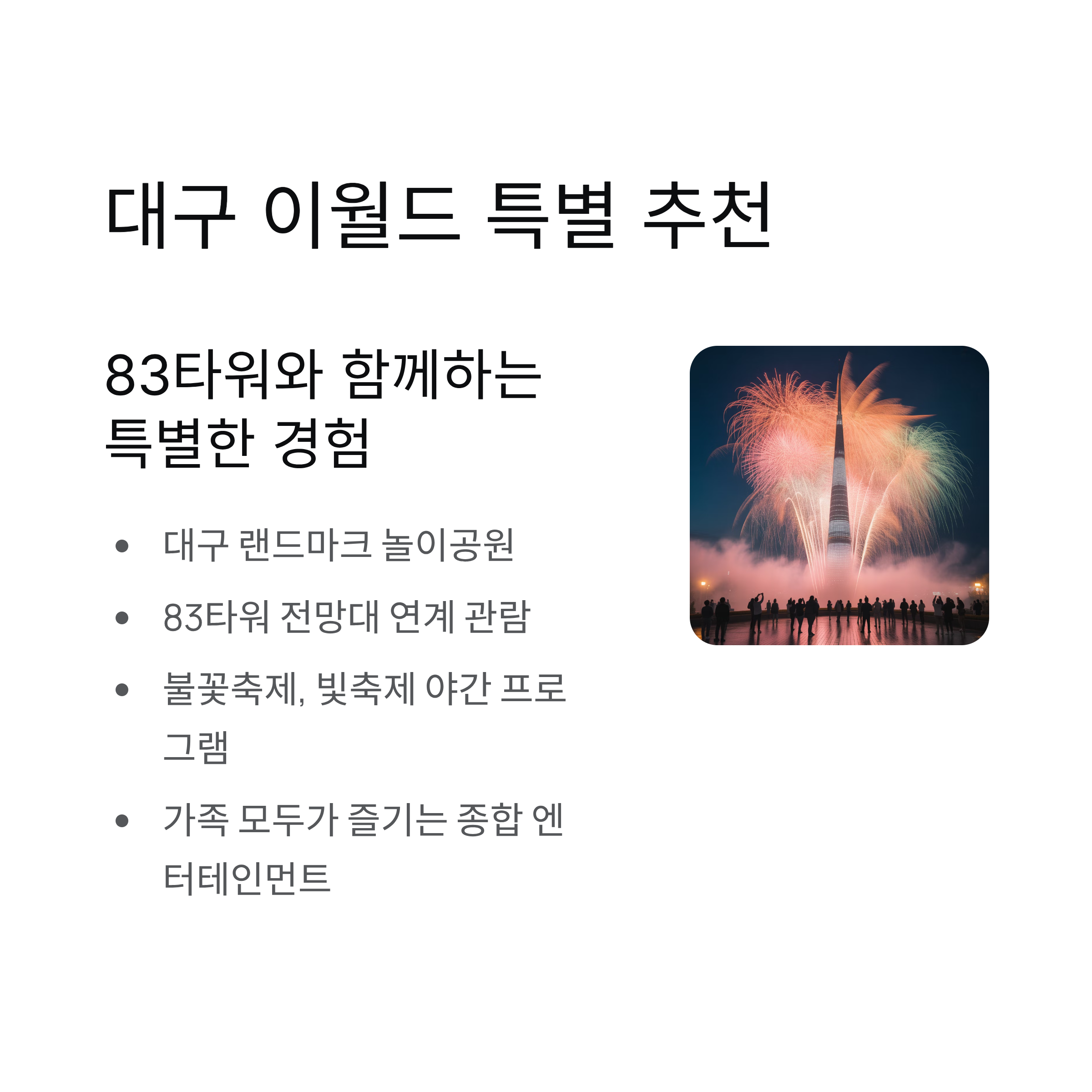 | 대구 | 이월드 | 83타워 전망대, 야간축제 인기 |