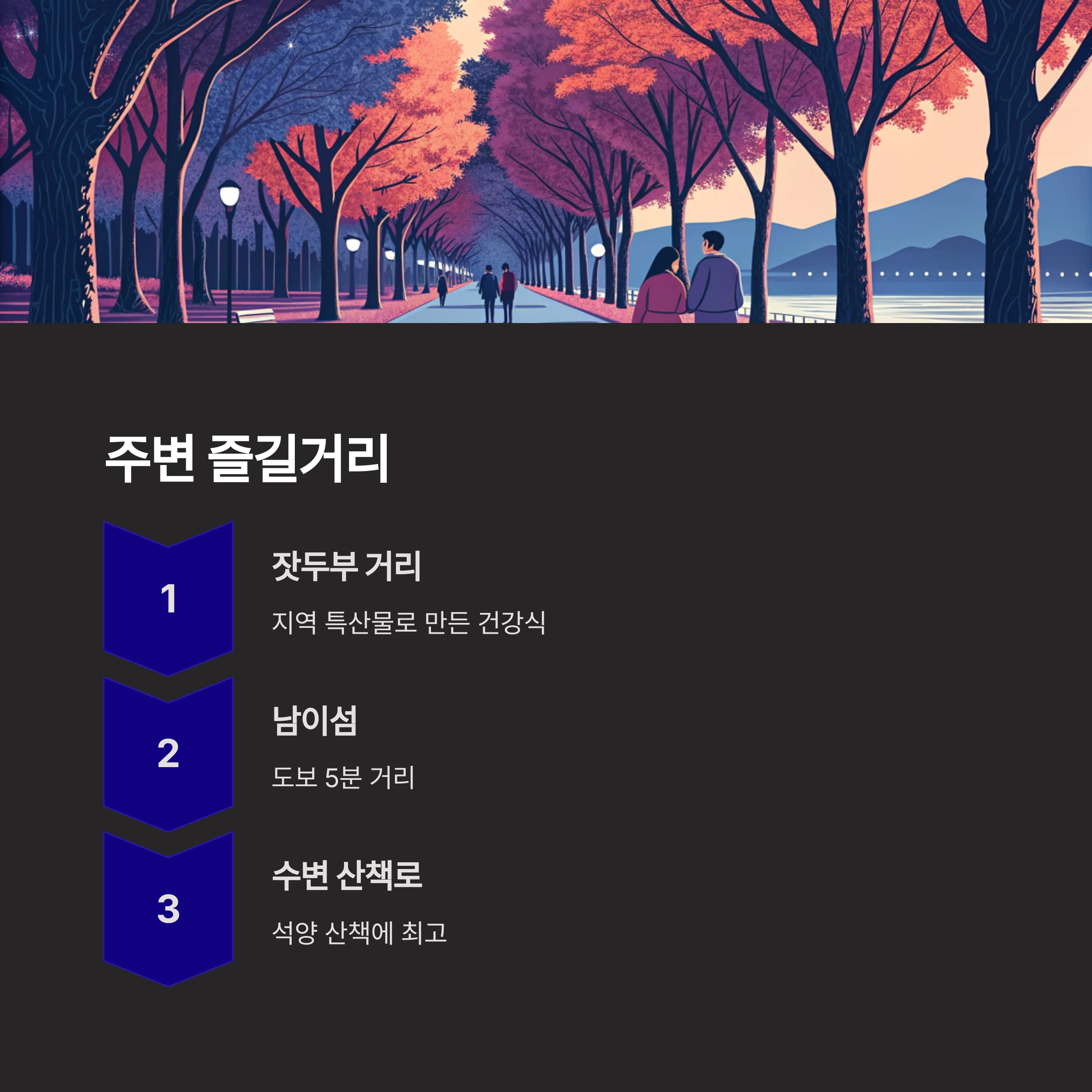 - 자라섬 수변 산책로: 캠핑 후 석양 산책에 최고