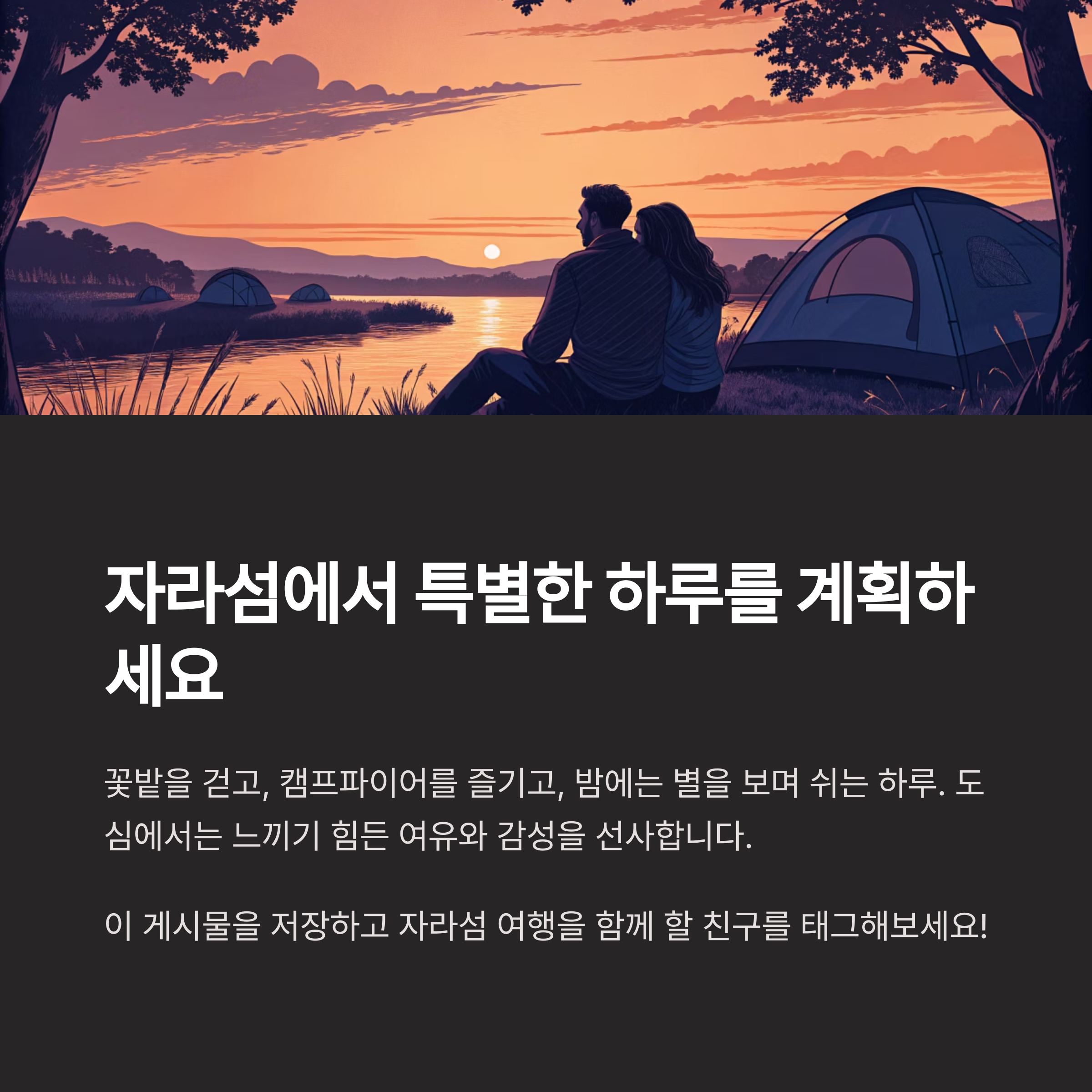 결론: 자라섬에서 꽃과 자연, 하룻밤의 낭만을 만끽하세요