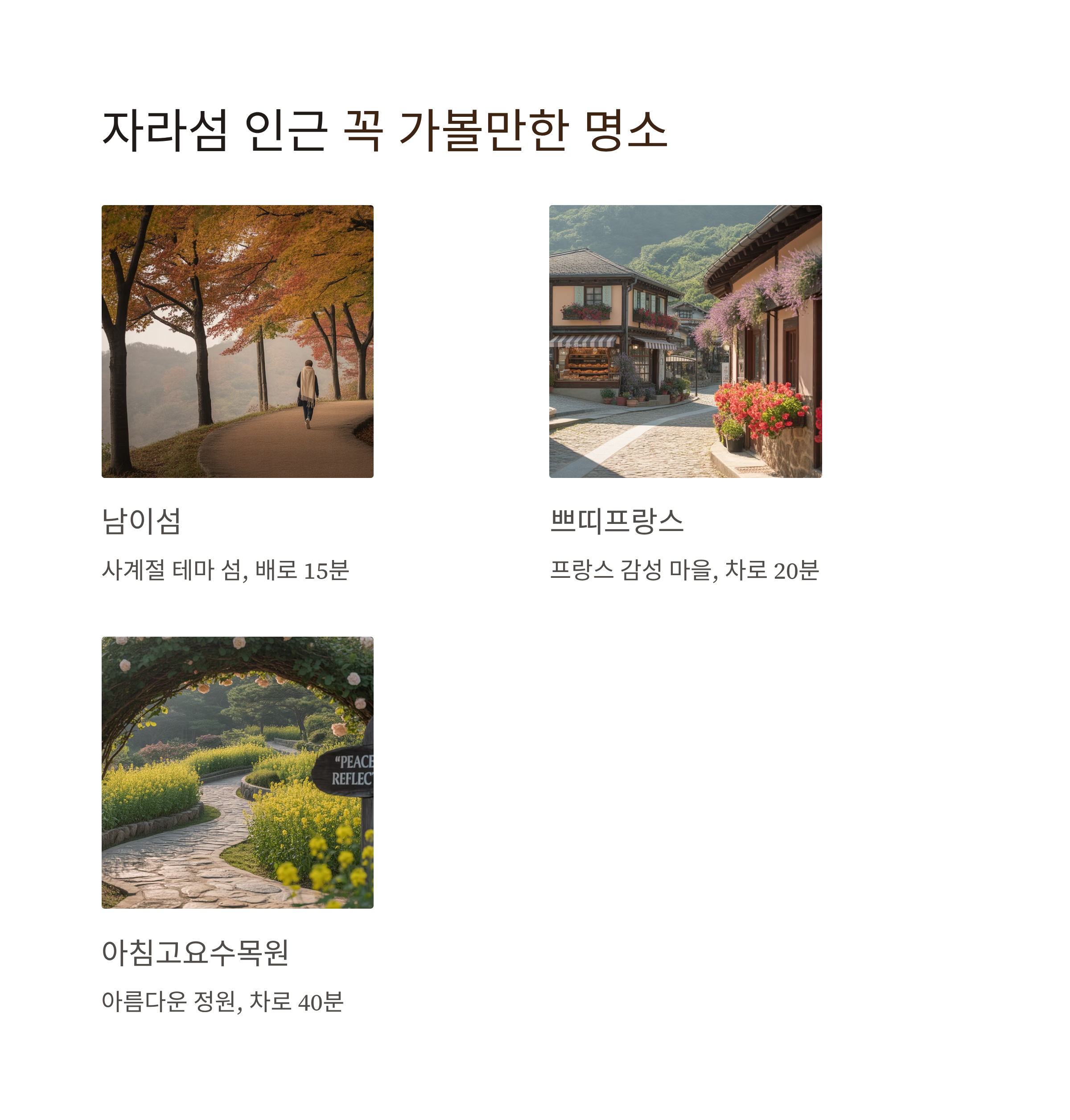 | 쁘띠프랑스 | 프랑스 감성 마을 | 20분 |