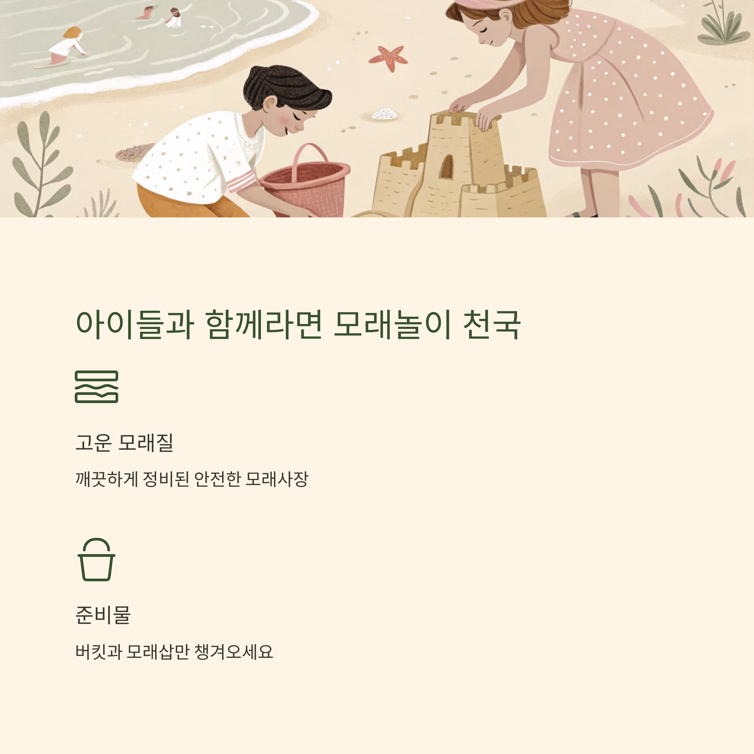 모래놀이를 하기에도 안전한 환경이라 가족 여행지로도