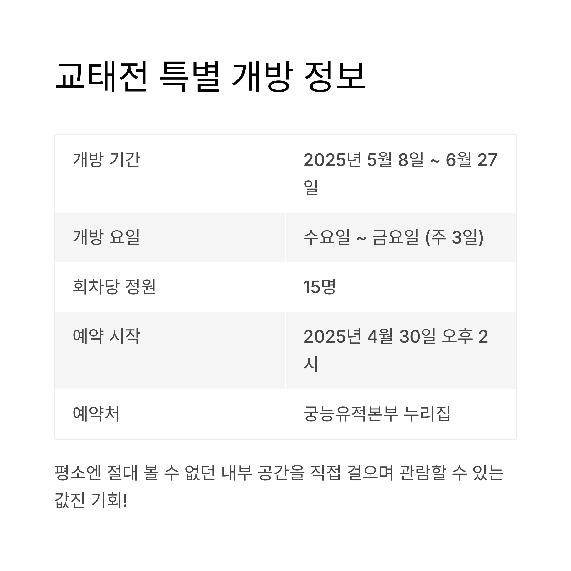 표로 정리한 경복궁 교태전 특별 개방 정보