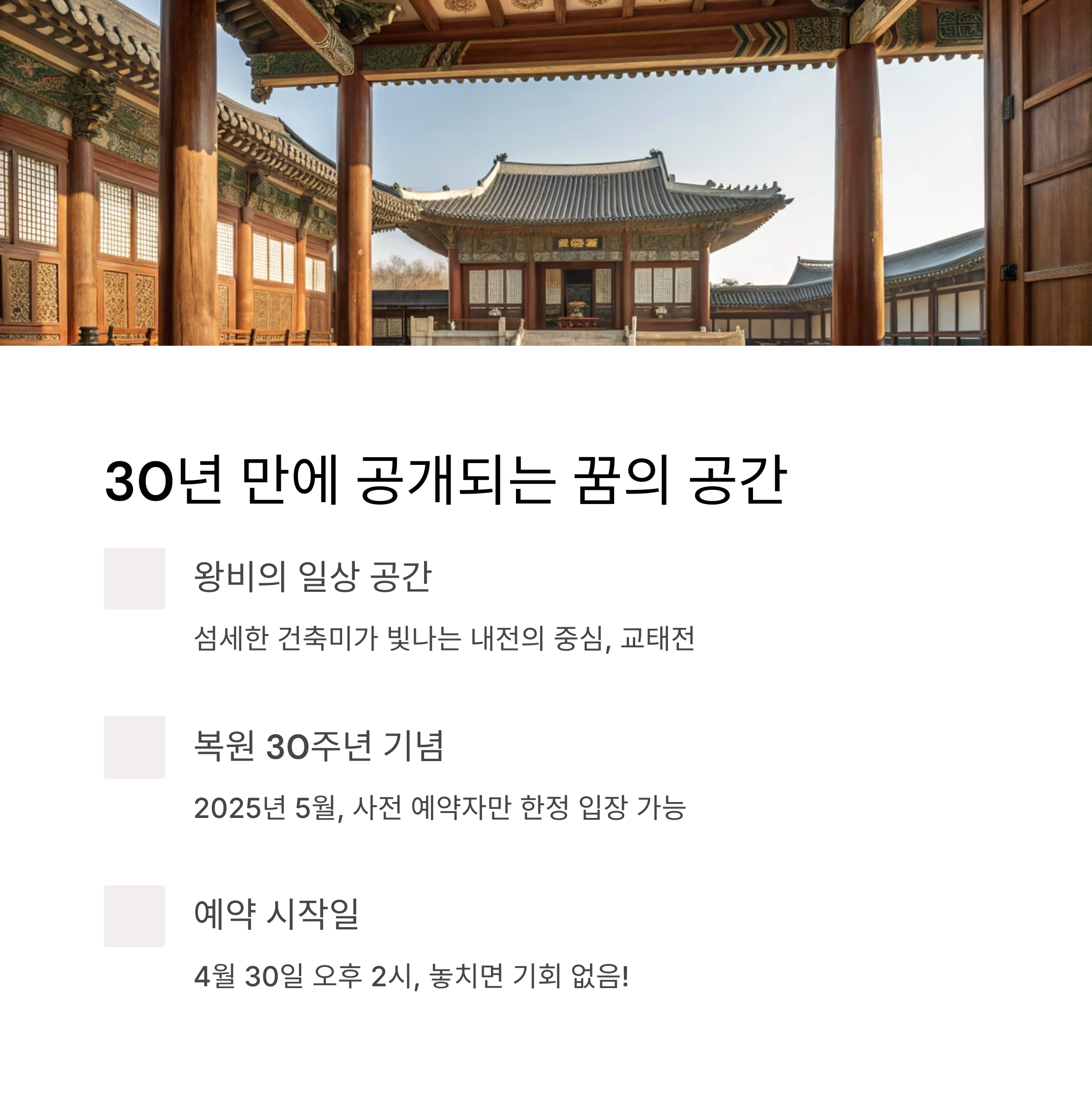 2025년 5월, 드디어 교태전이 일반에 특별 개방됩니다.