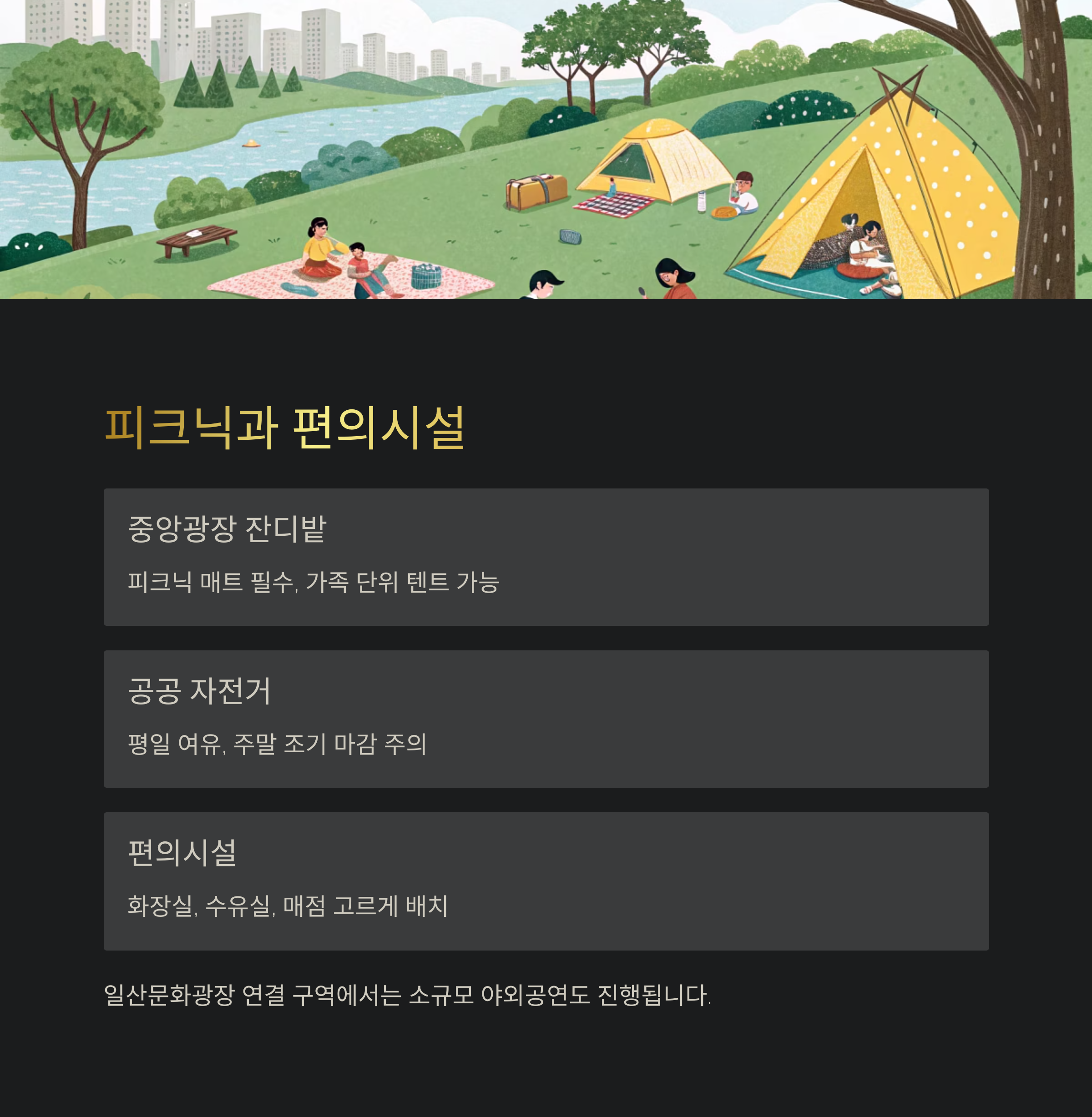 일산문화광장과 연결된 구역에는 소규모 야외공연도 열리므로 주말 방문 시 체크하면 좋습니다