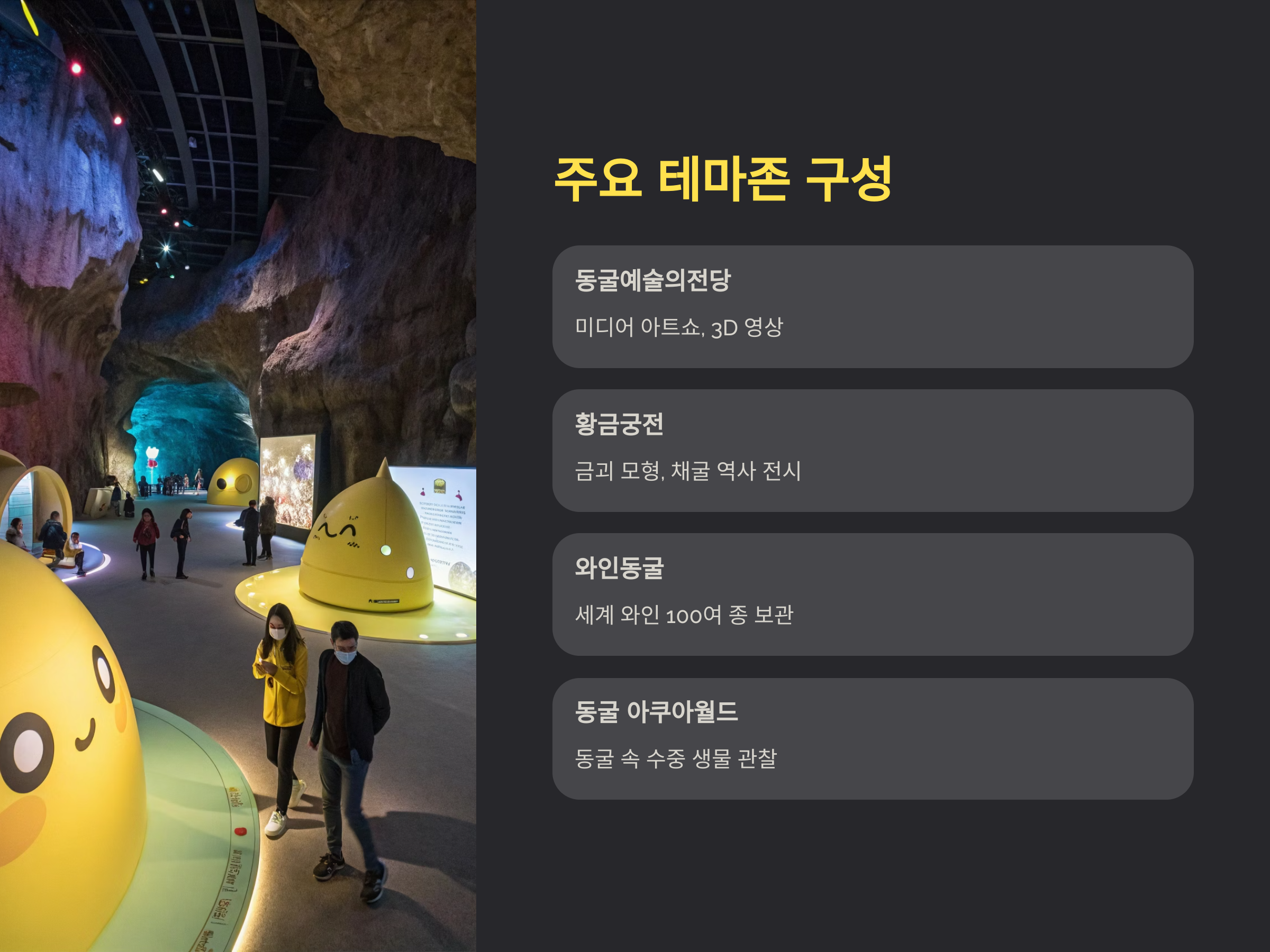 | 동굴예술의전당 | 미디어 아트쇼, 3D 영상, 동굴 퍼포먼스 관람 가능 |