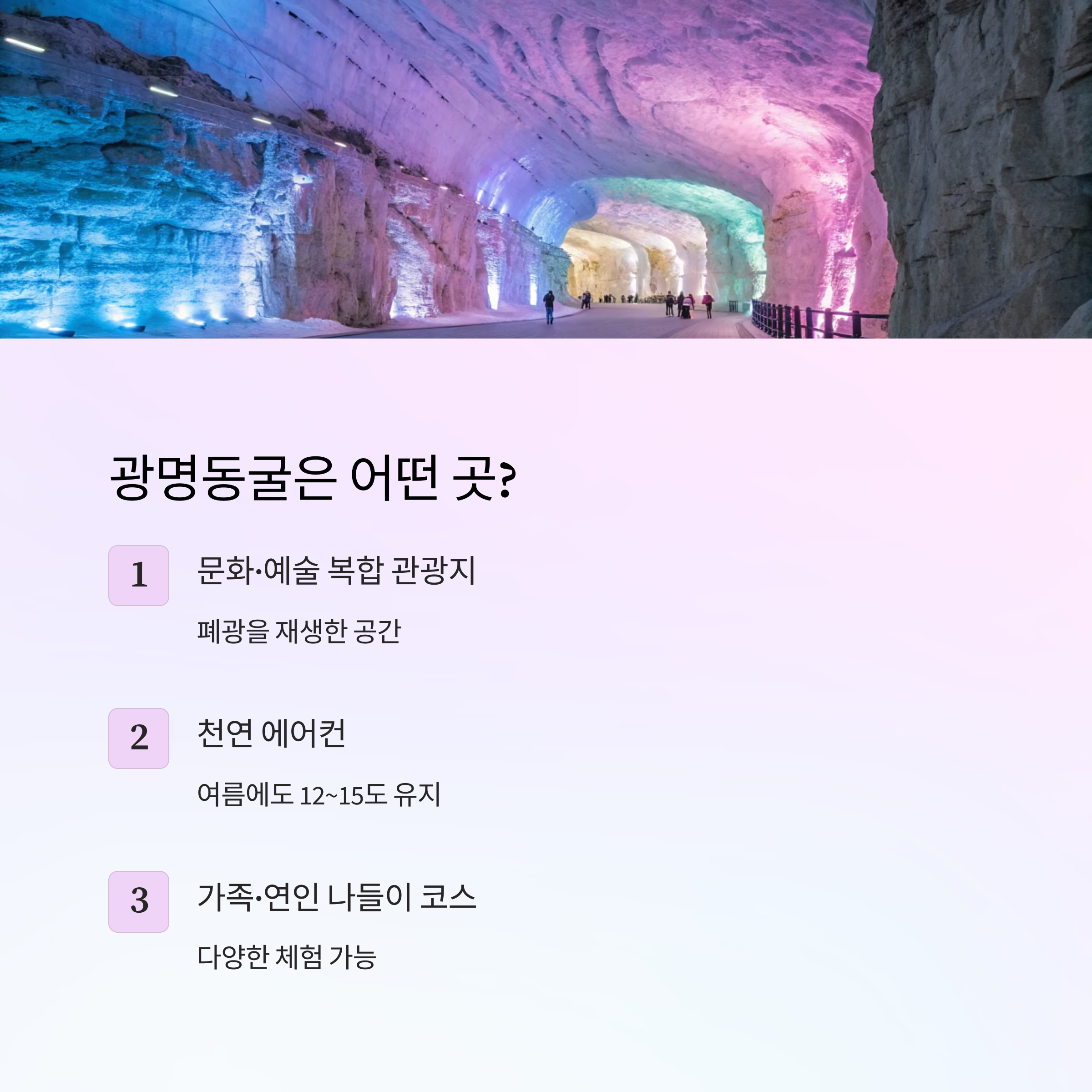 이번 글에서는 광명동굴의 볼거리, 운영 정보, 내부 체험 코스, 방문 팁, 참고 링크까지 안내드립니다