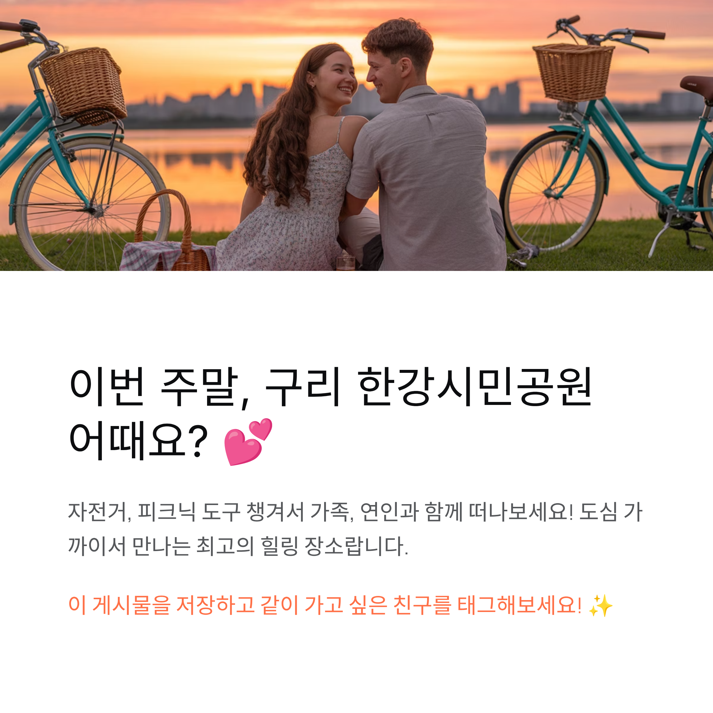 구리 한강시민공원은 자전거 라이딩, 가족 피크닉, 계절별 자연 풍경까지 즐길 수 있는 다채로운 공간입니다.