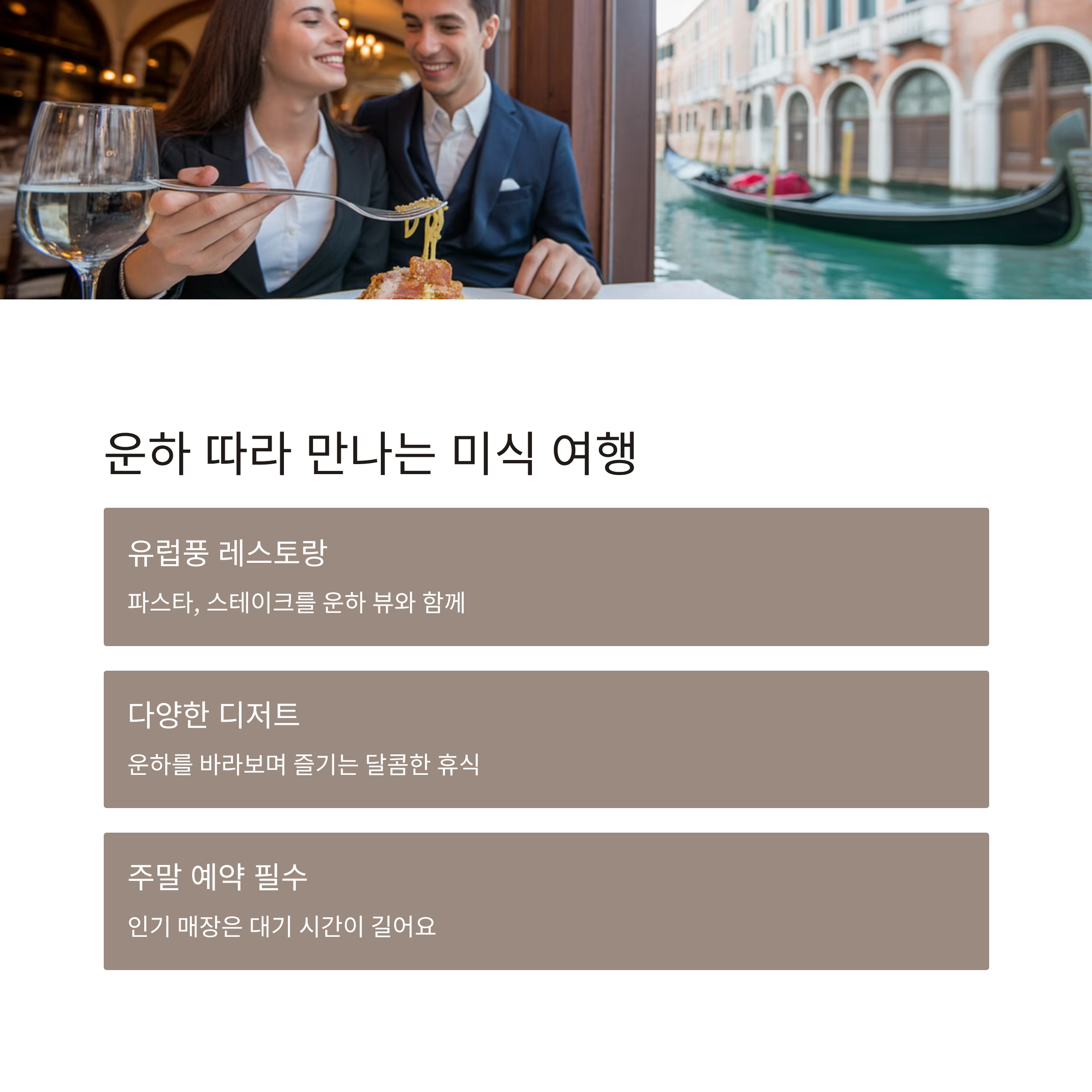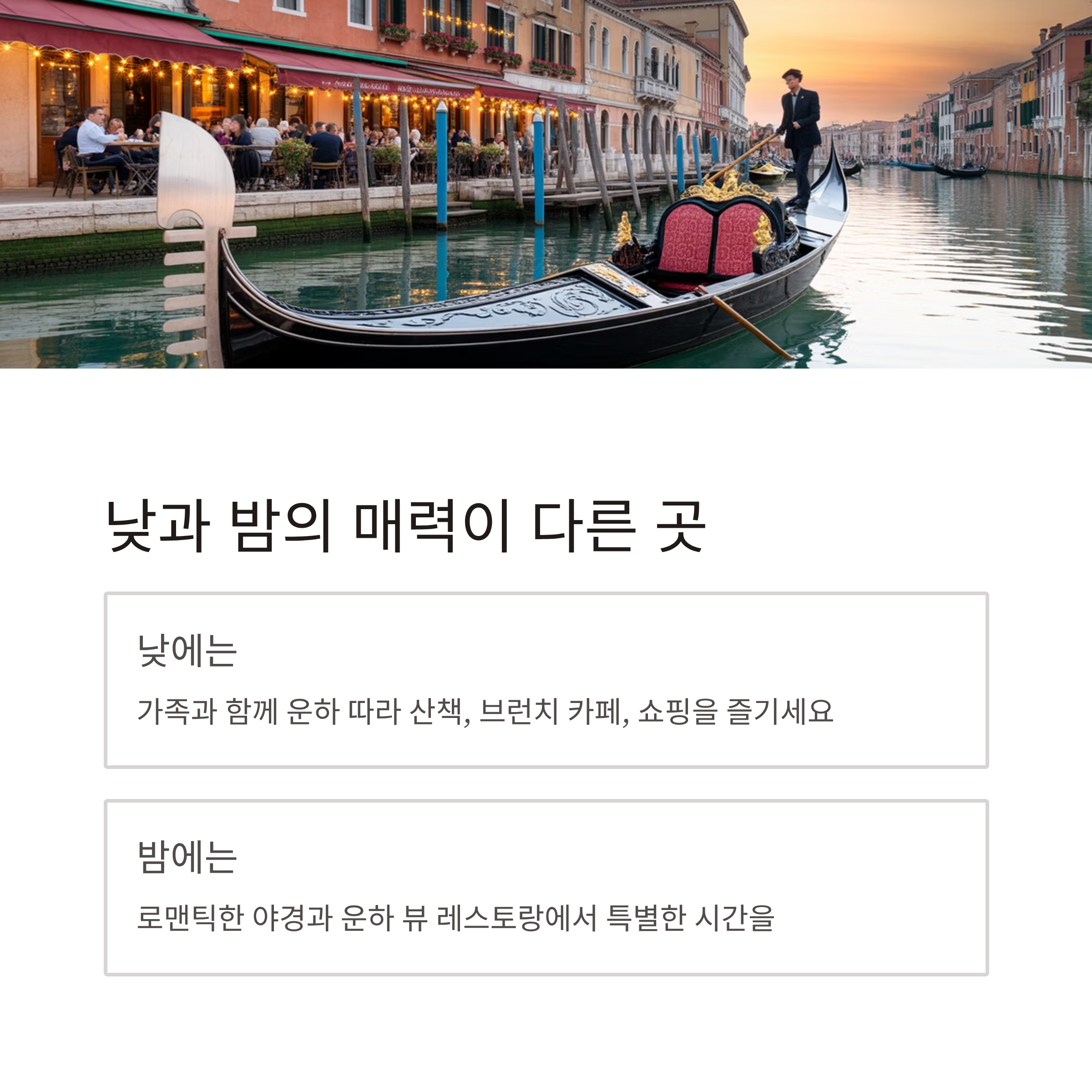 - 저녁: 야경 감상, 운하 뷰 레스토랑에서 식사