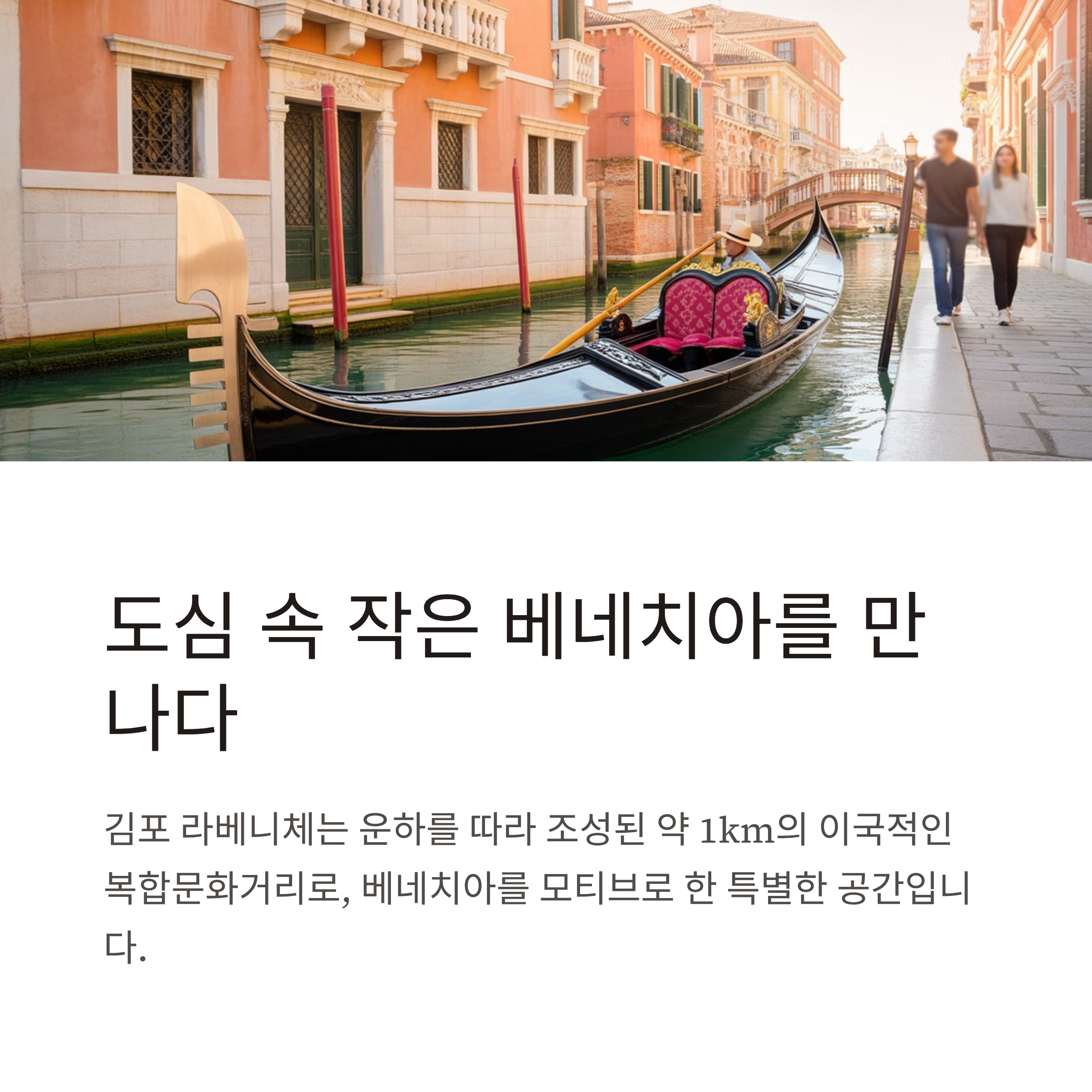 김포 라베니체 마치 에비뉴는 이탈리아 베네치아를 모티브로 한 상업·문화 공간입니다.