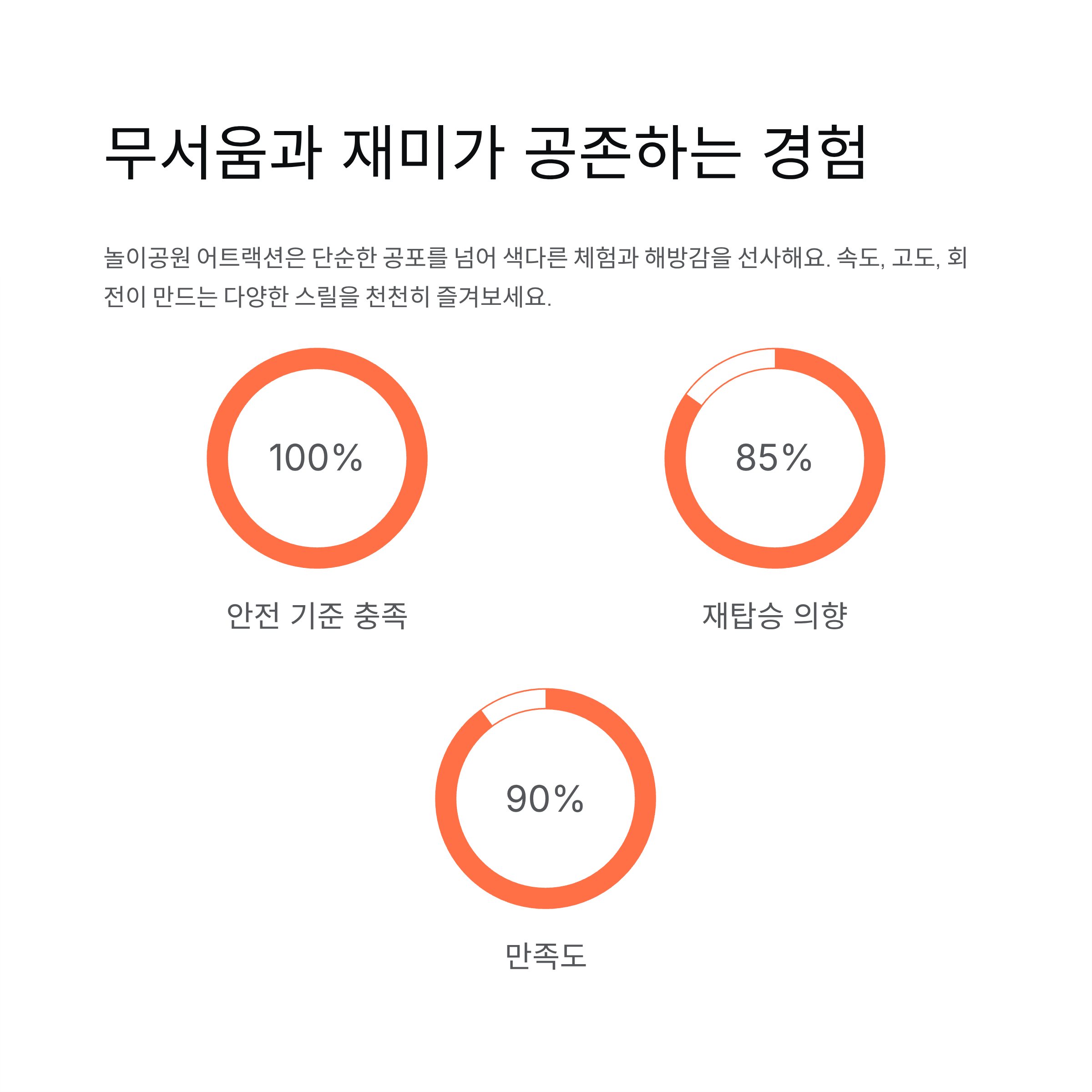 어트랙션마다 난도가 달라 처음 도전하는 분들은 선택이 어려울 수 있어요. 아래 표는 스릴 강도를 가볍게 정리한 흐름입니다.