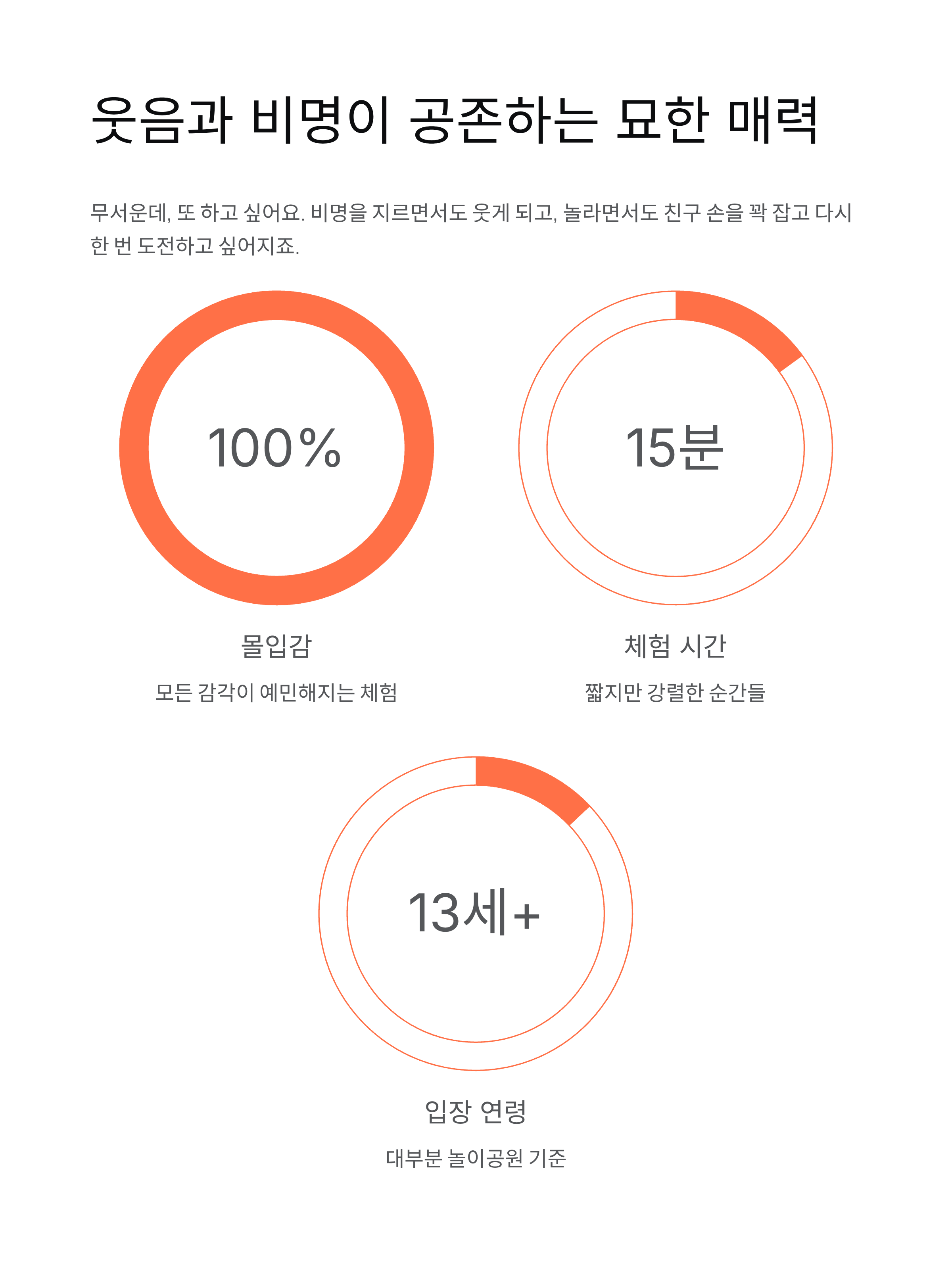 비명을 지르면서도 웃게 되고, 놀라면서도 친구 손을 꽉 잡고 다시 한 번 도전하고 싶어지죠.