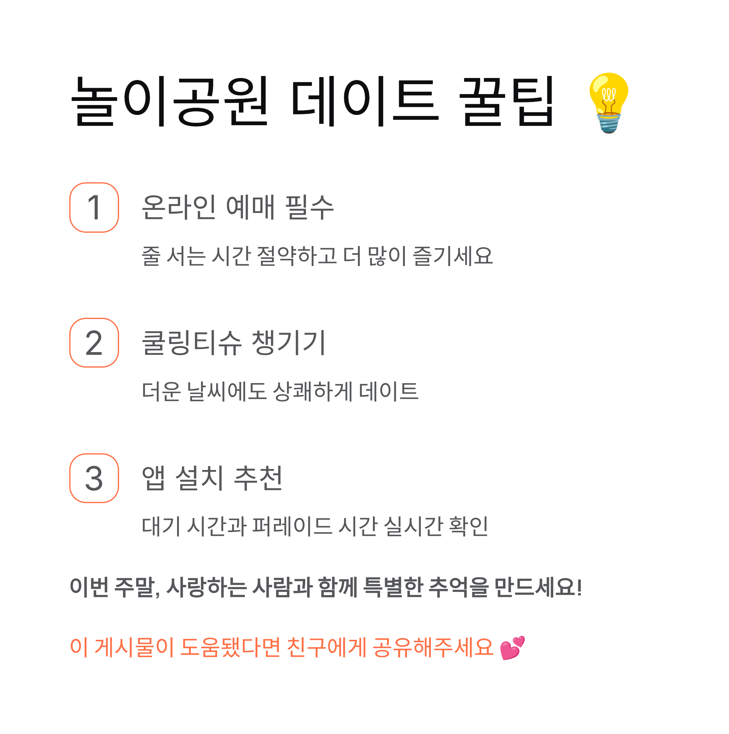 오늘은 놀이공원 데이트를 완벽하게 즐길 수 있는 필수코스 5곳을 소개할게요.