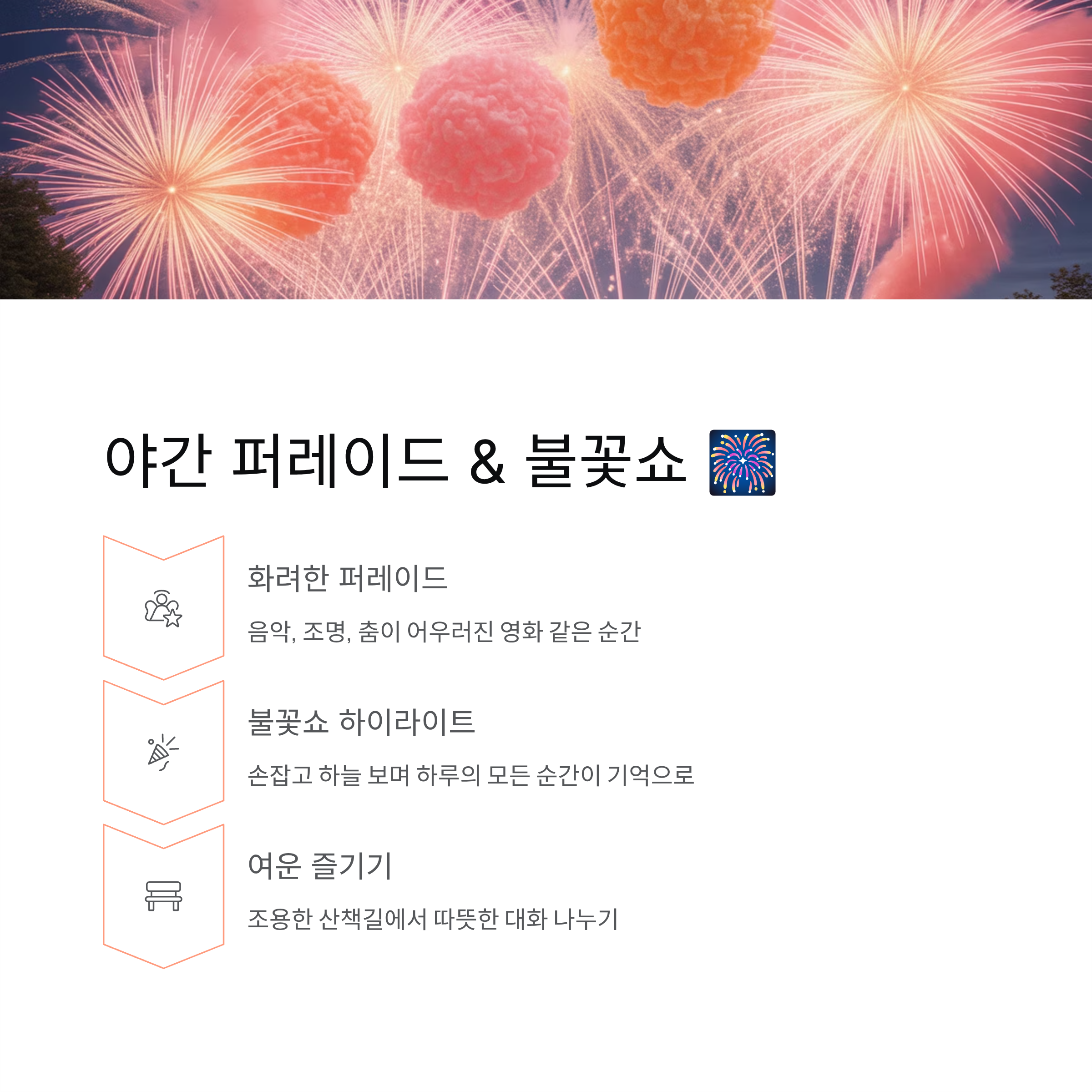 5. 야간 퍼레이드 & 불꽃쇼 – 하루의 완벽한 마무리