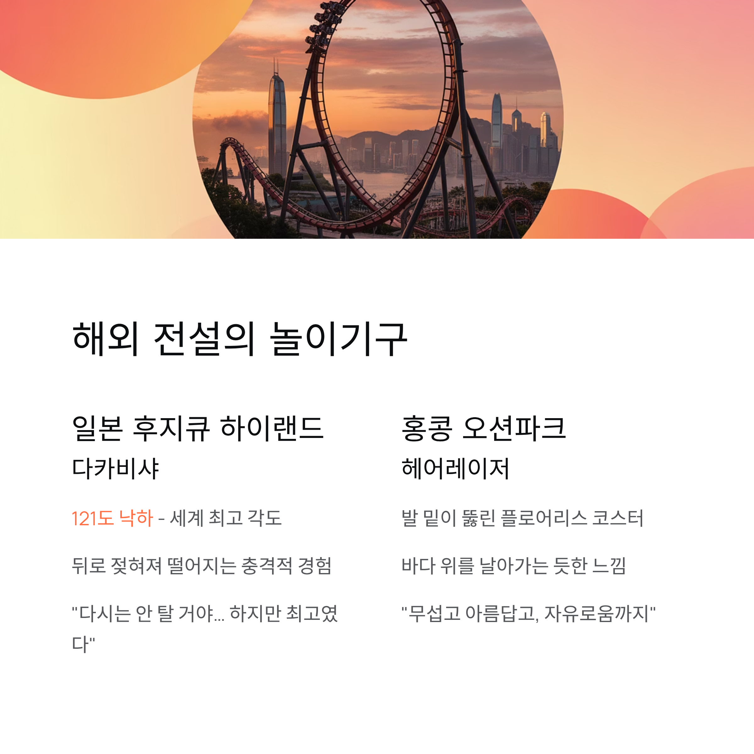 오늘은 전국 놀이공원과 해외 인기 테마파크의 무서운 놀이기구 후기 모음을 준비했어요.