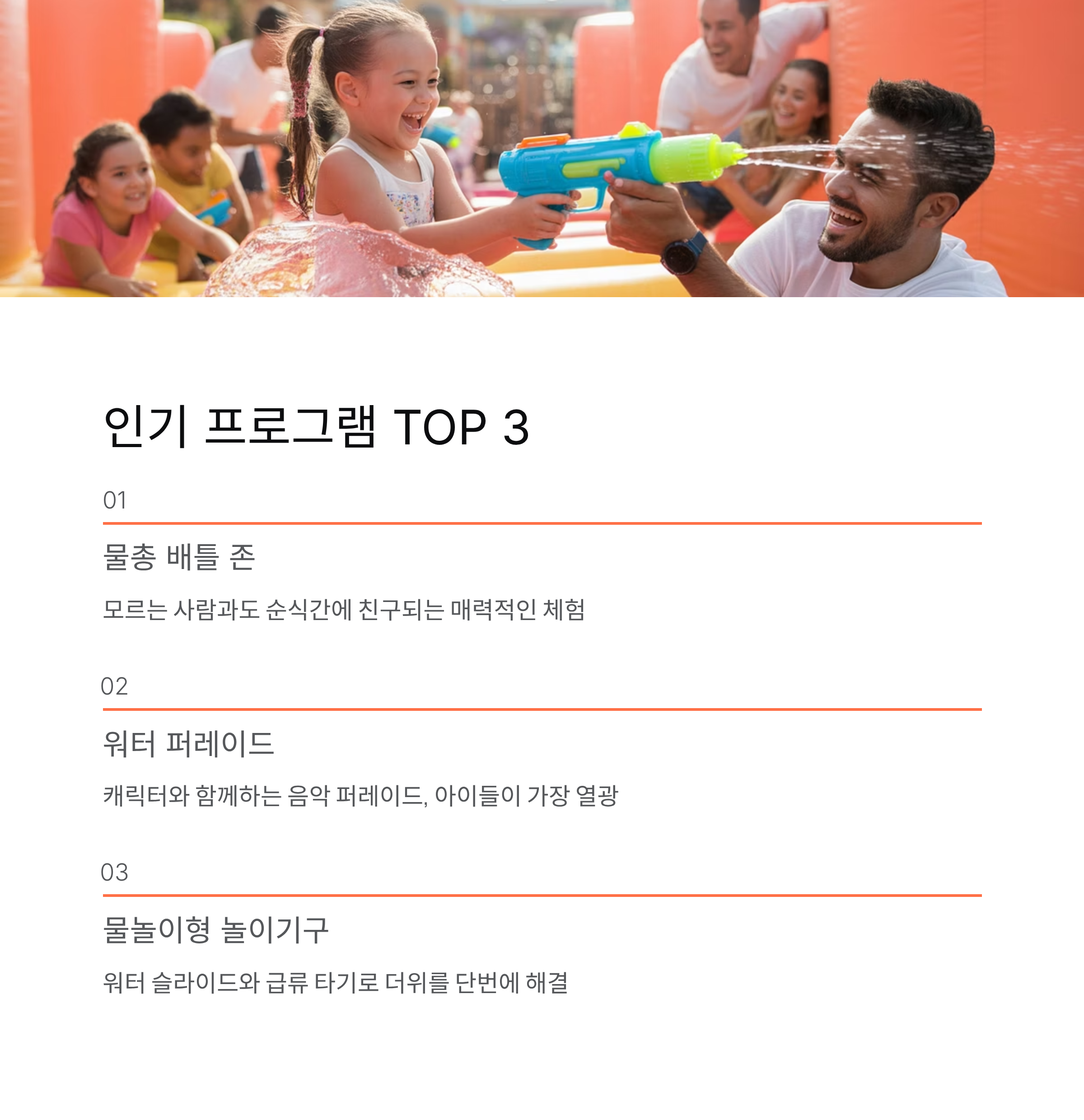 | 물총 배틀 | 자유로운 참여형 | 가족, 친구 |