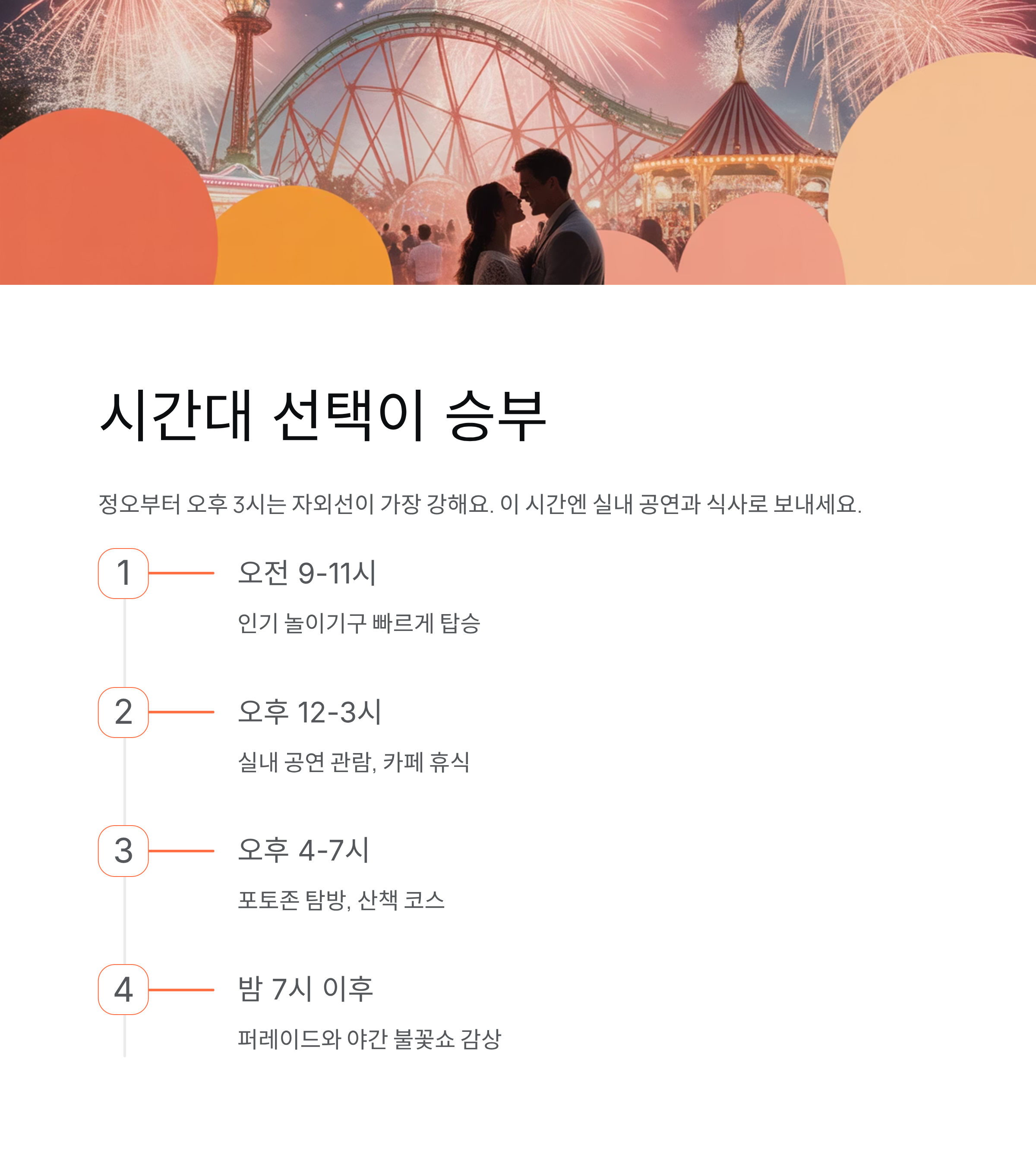 여름 놀이공원 데이트의 핵심은 ‘시간대’입니다.