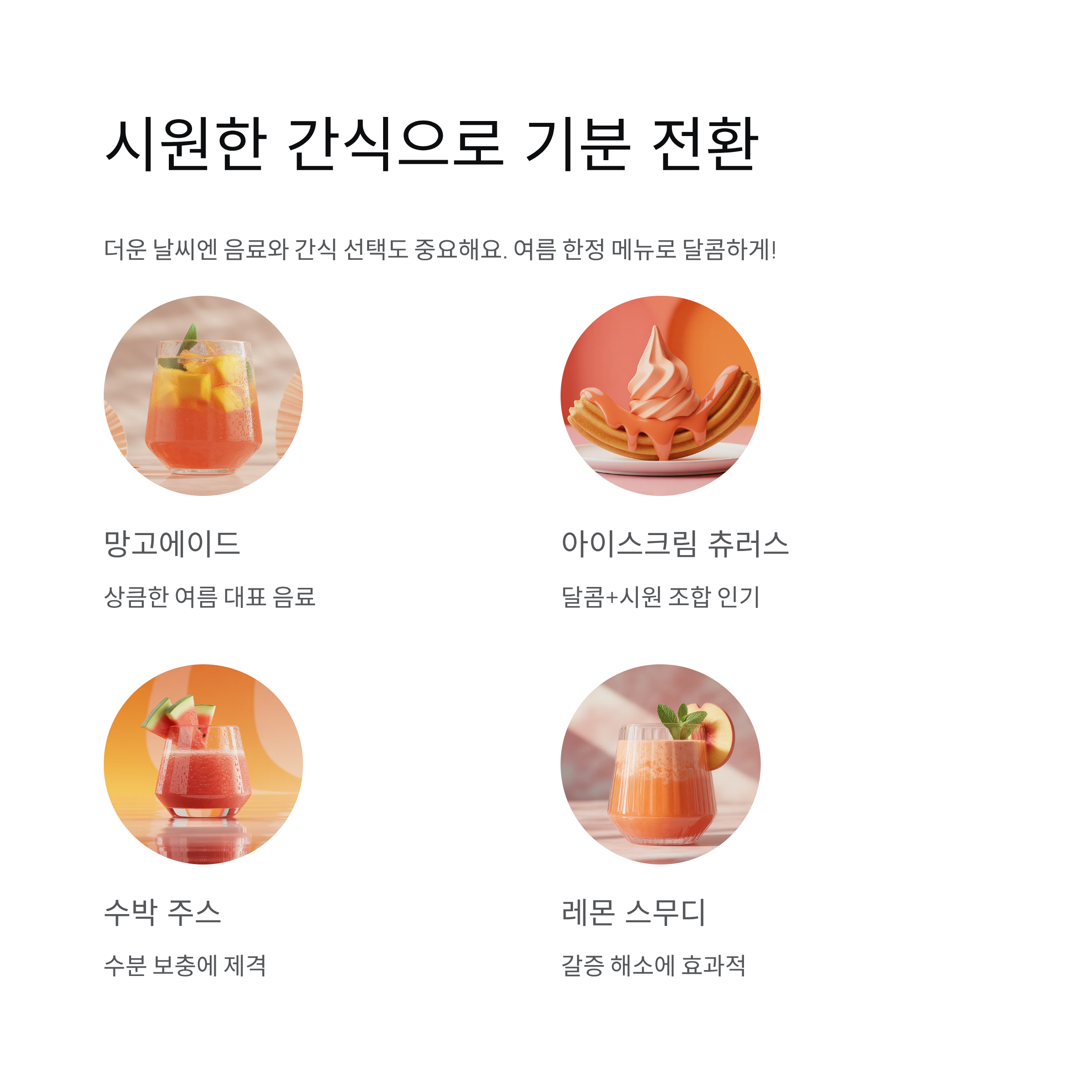 더운 날씨에는 음료나 간식 선택도 중요합니다.