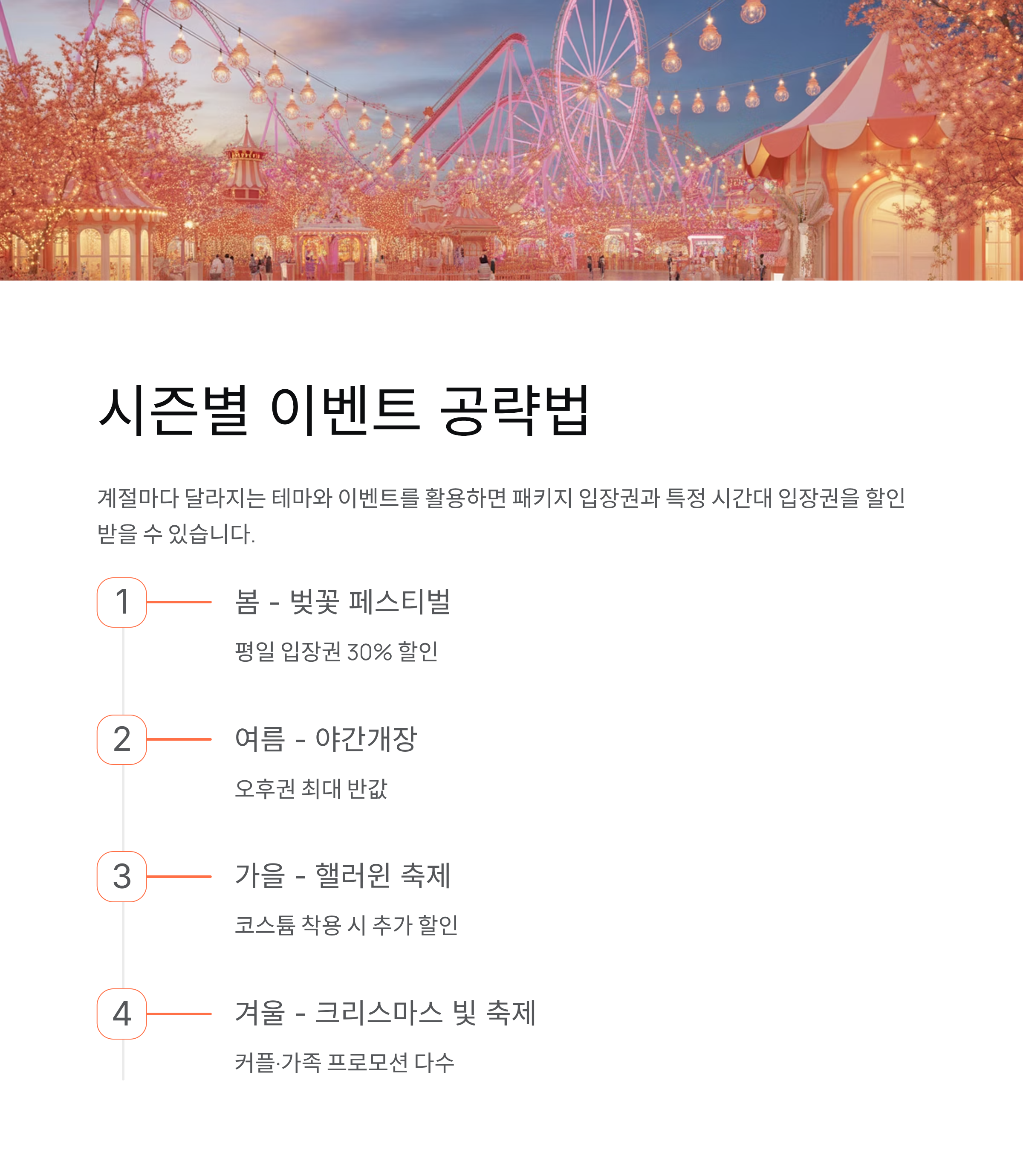 | 겨울 | 크리스마스 빛 축제 | 커플·가족 프로모션 다수 |