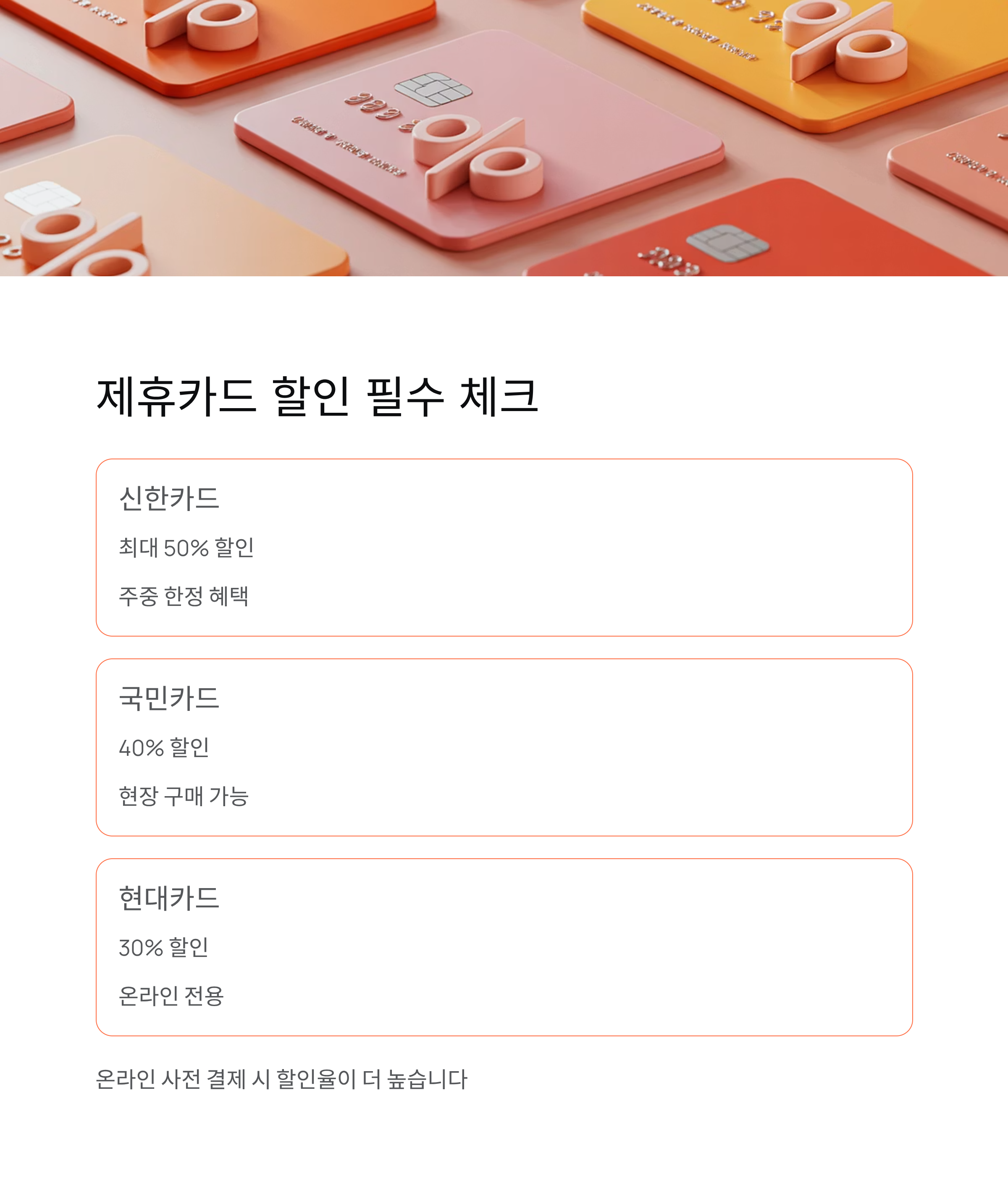 첫 번째, 기본 중의 기본! 제휴카드 할인은 필수 확인