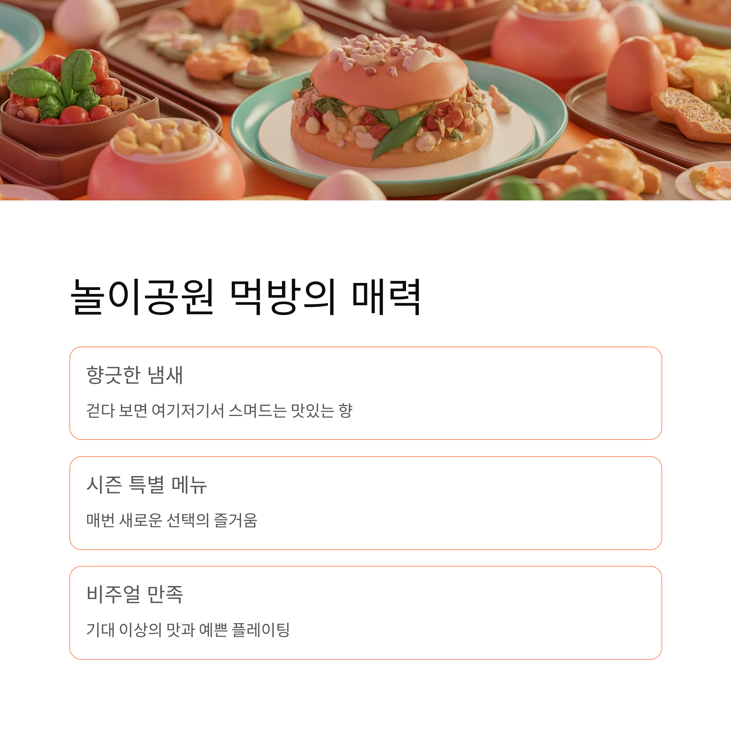 놀이공원에서는 놀이기구만큼이나 먹는 즐거움이 큰 비중을 차지해요. 걷다 보면 향긋한 냄새가 여기저기서 스며들고, 시즌마다 특별 메뉴까지 등장해 선택 폭이 넓어져요. 실제로 먹어본 인기 메뉴들은 기대 이상으로 맛과 비주얼이 좋아 한참을 걸어도 피곤함이 싹 풀리는 느낌이었어요. 오늘은 방문객들이 꾸준히 찾는 메뉴들을 중심으로 현장에서 느낀 생생한 먹방 후기를 소개해드릴게요.