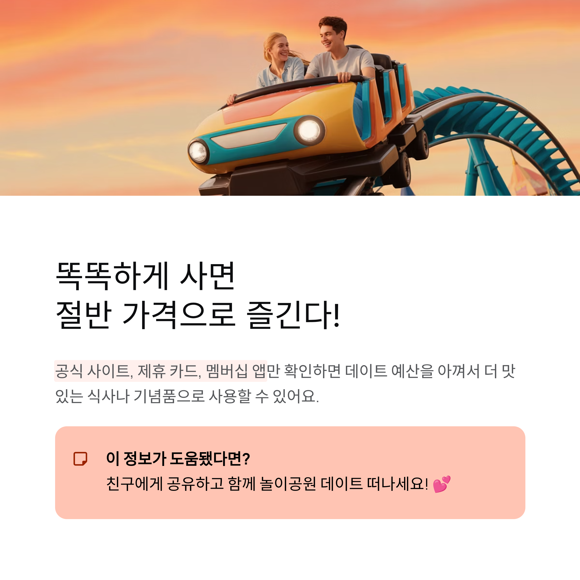 놀이공원 데이트, 이젠 가격 걱정 말고 즐겁게 떠나보세요.