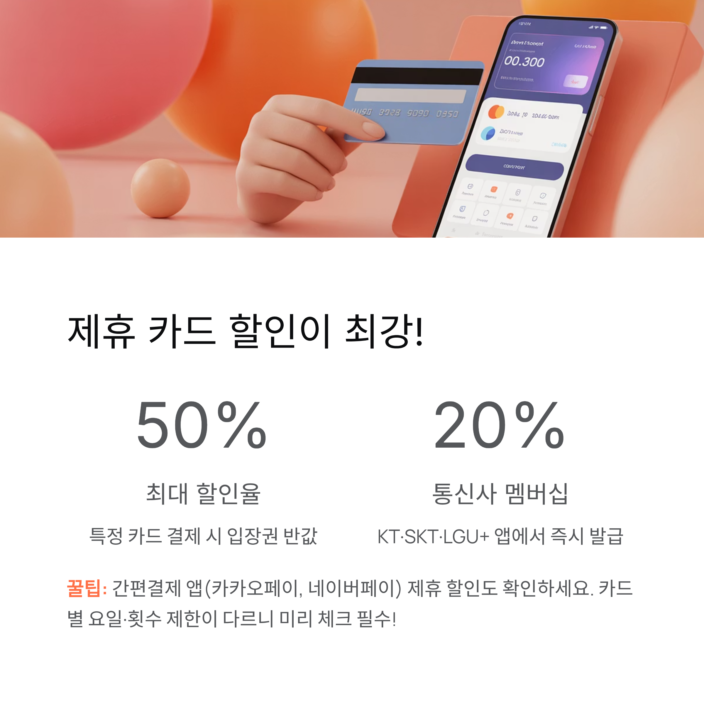 | 카드 제휴 할인 | 최대 50% | 지정 카드 결제 |