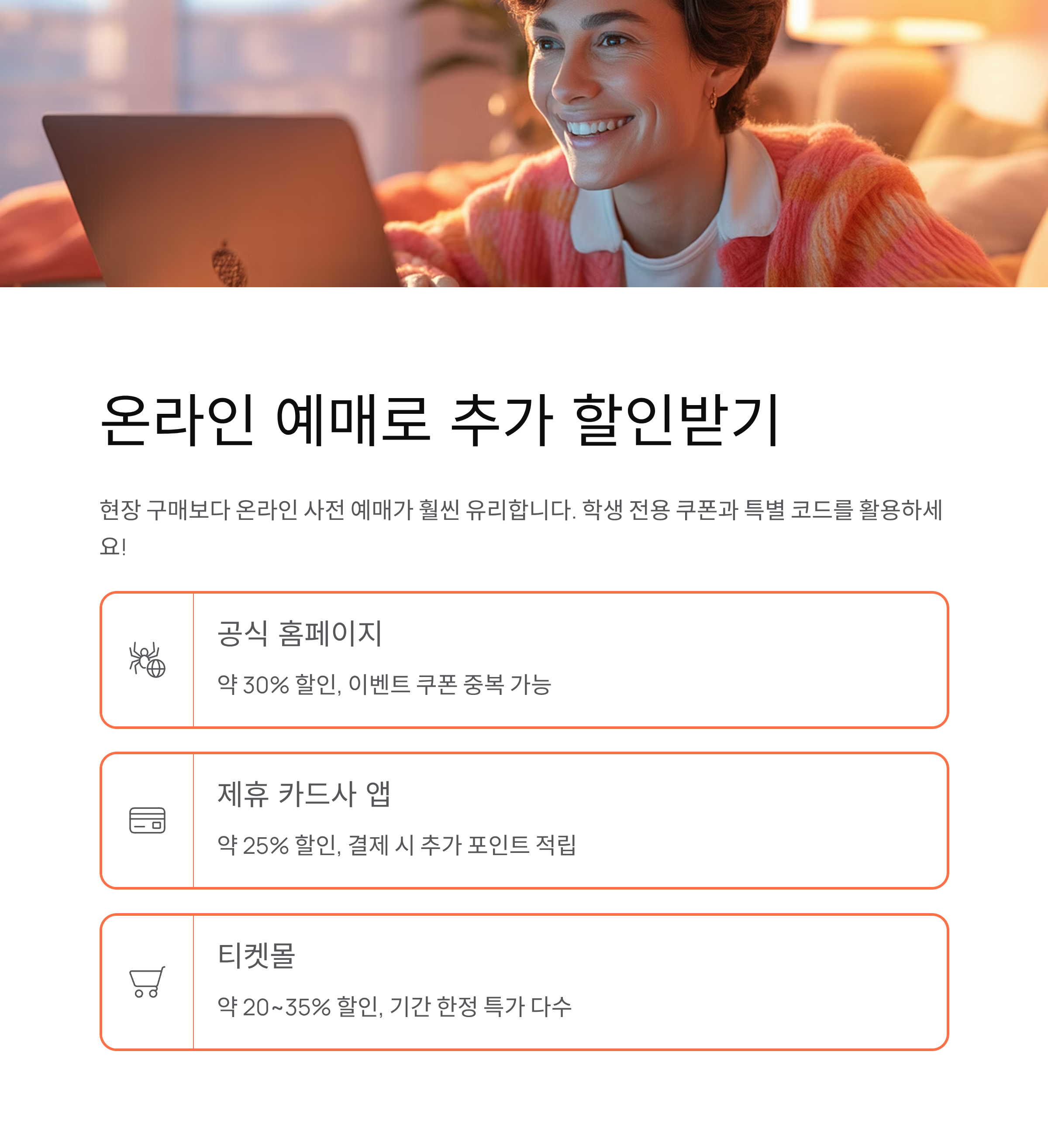 학생증, 제휴카드, 온라인 예매, 단체 방문 등 여러 경로를 활용하면