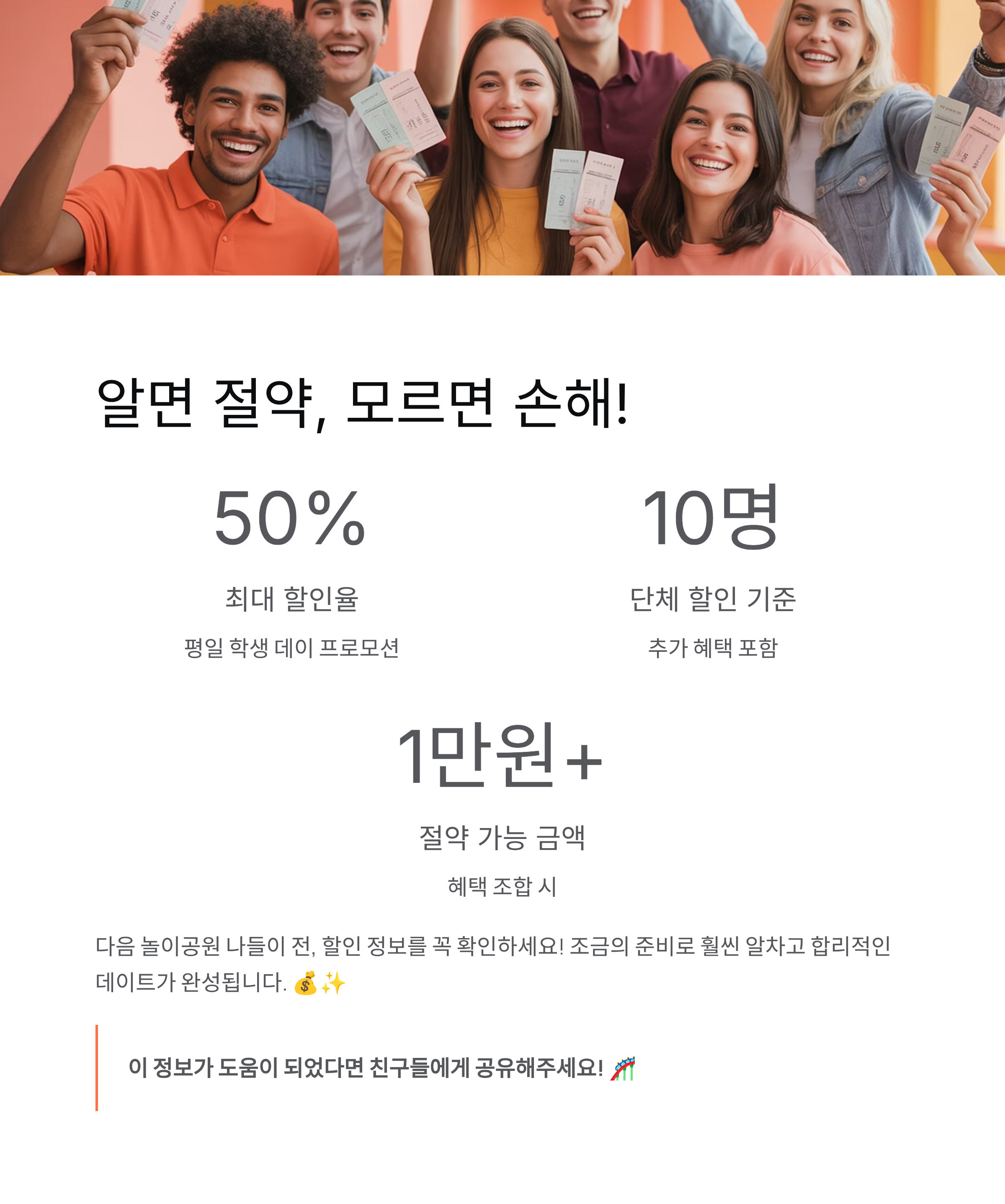 오늘은 대학생, 고등학생, 중학생 모두에게 도움이 될 놀이공원 학생 할인 꿀팁을 정리해 드릴게요.