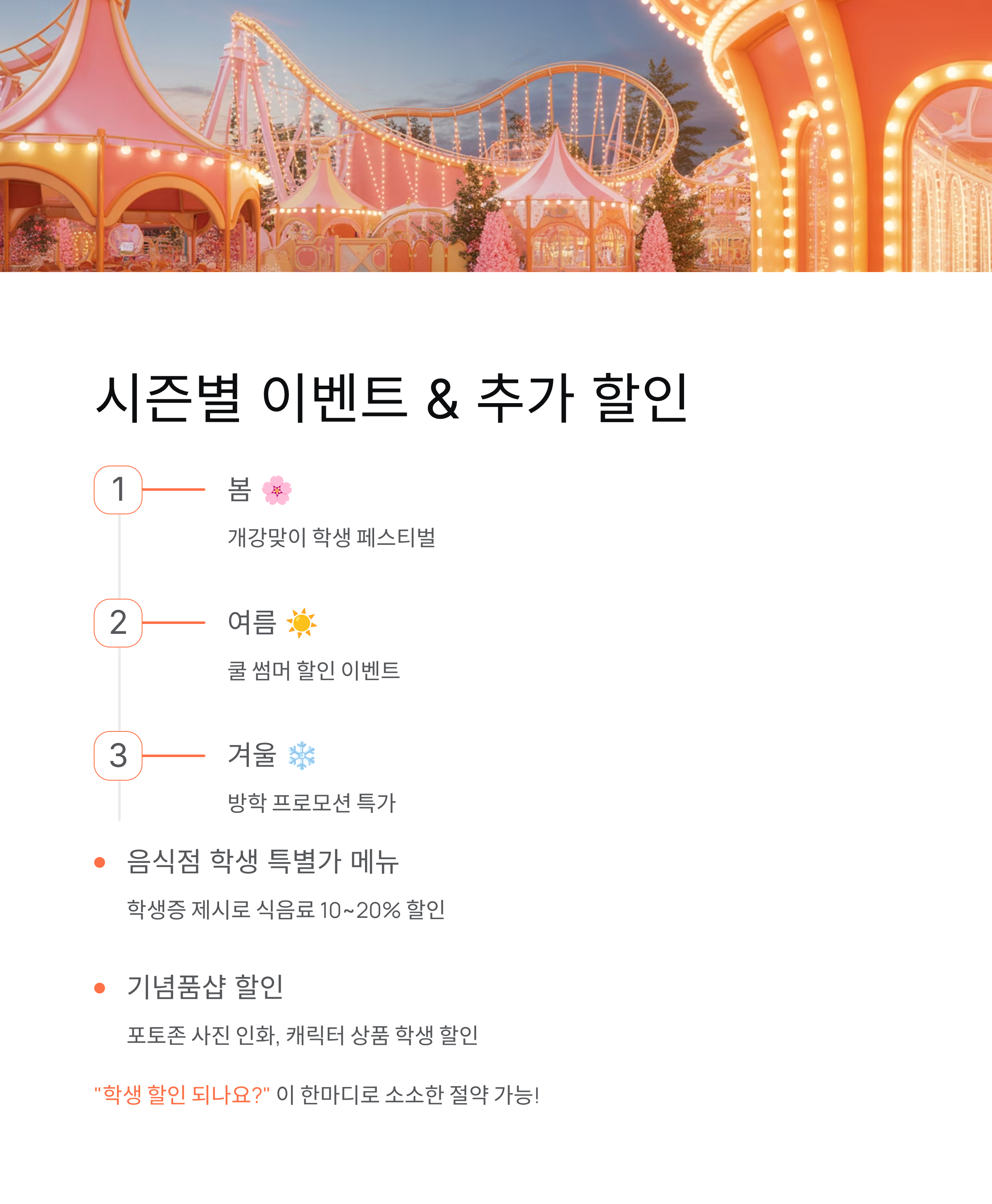 놀이공원은 누구에게나 즐거운 공간이지만, 학생들에게는 특별한 혜택의 장소이기도 합니다.