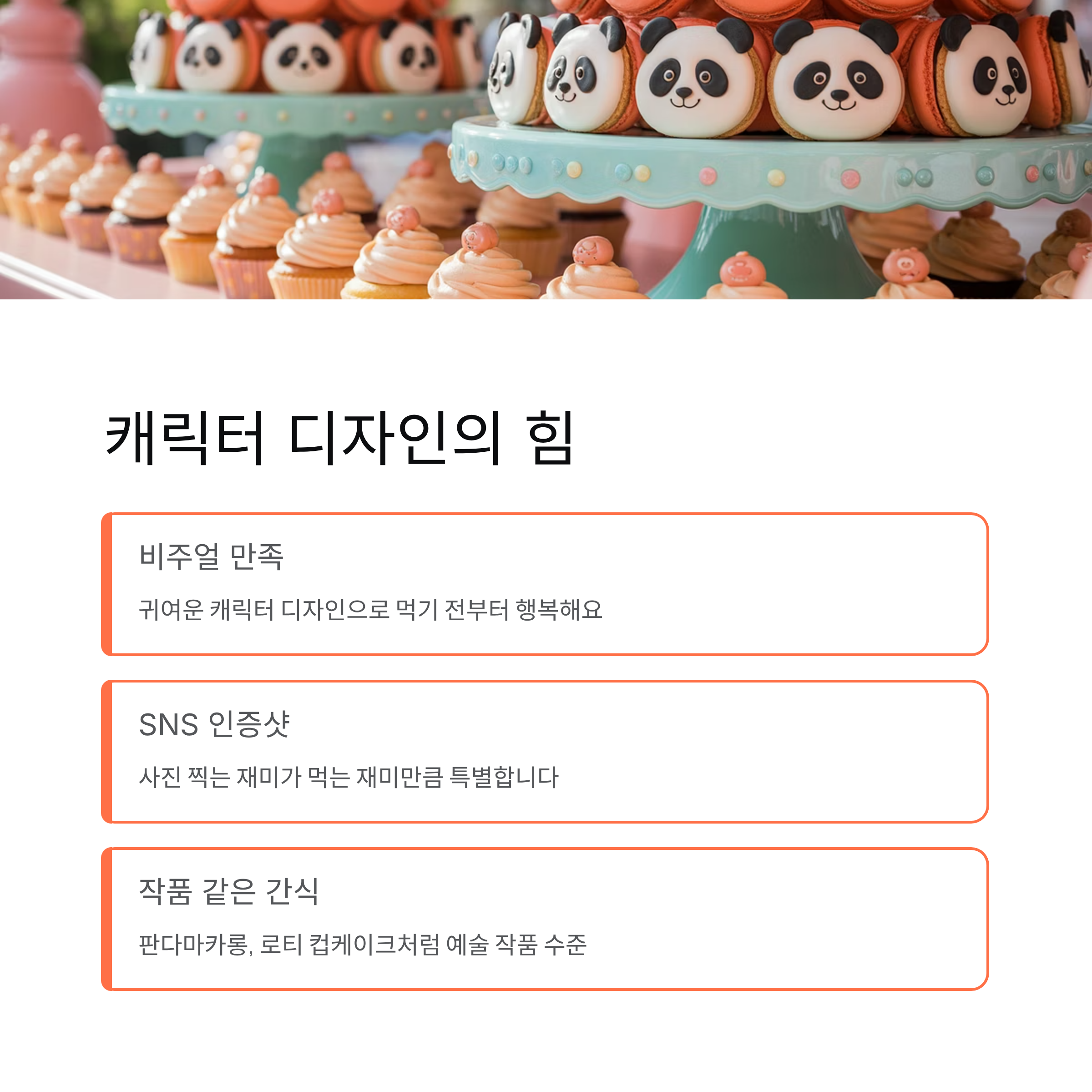 예를 들어 에버랜드의 판다마카롱, 롯데월드의 로티·로리 컵케이크처럼
