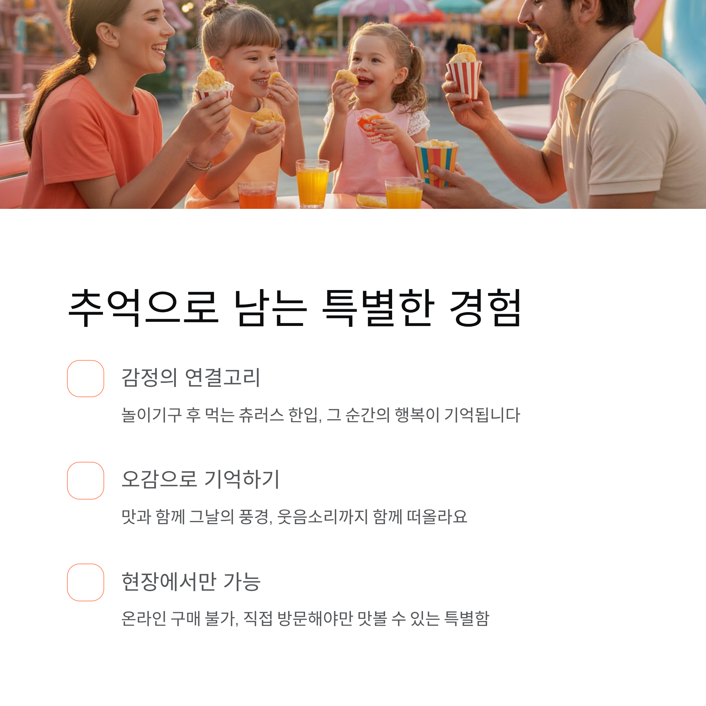 결국 ‘놀이공원에서의 경험’이 하나의 맛있는 기억으로 완성되는 셈이죠.