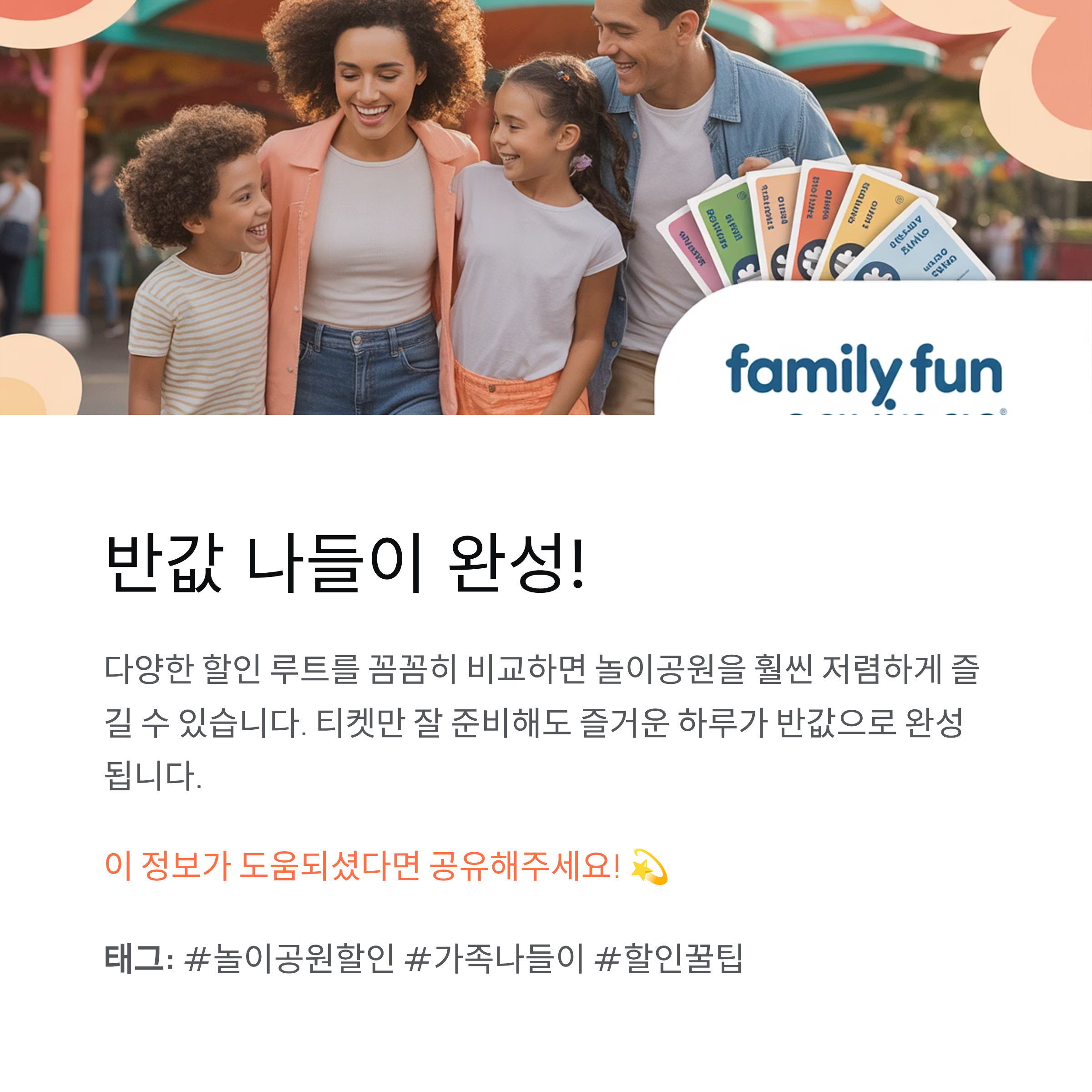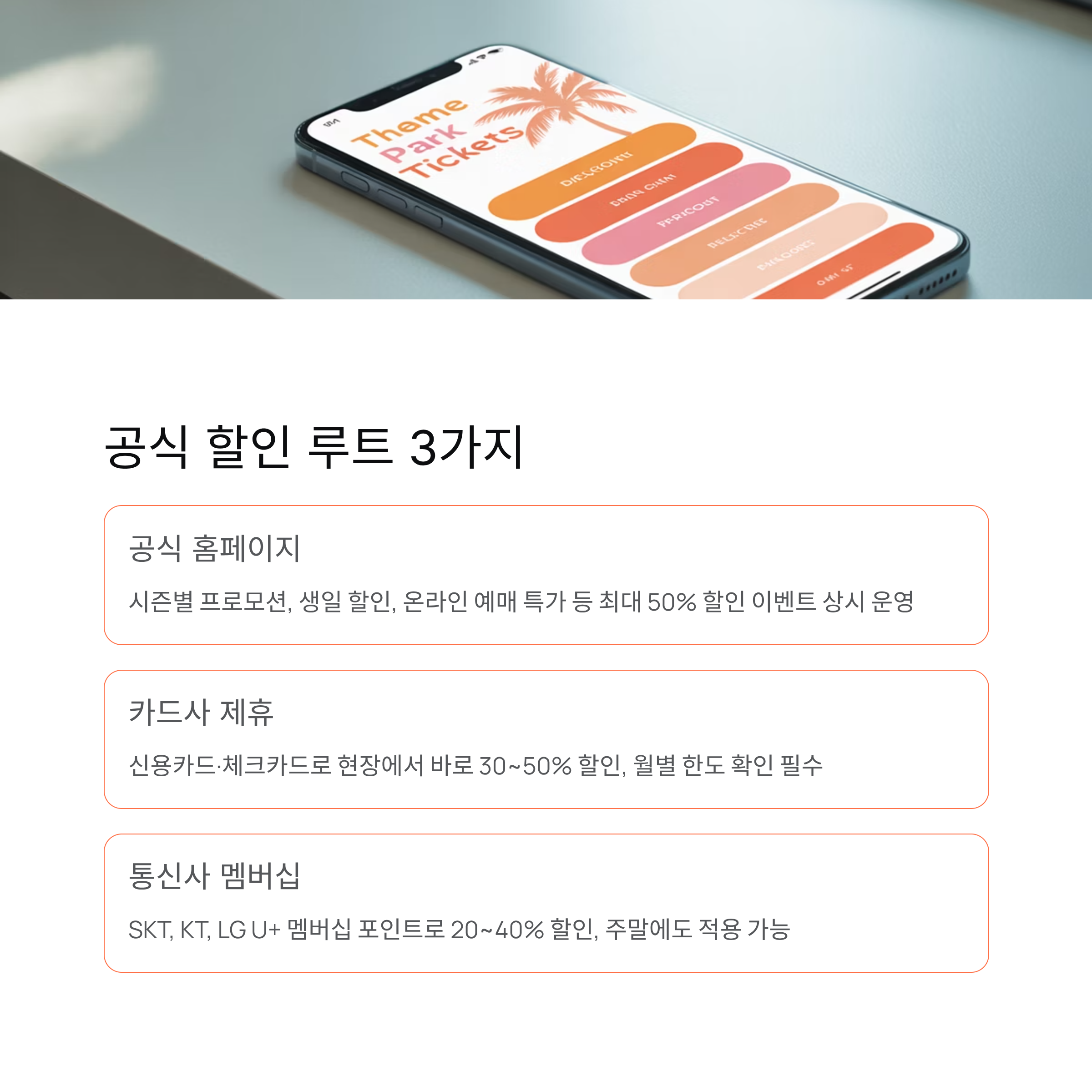 놀이공원은 티켓 가격이 부담될 수 있지만, 다양한 할인 루트를 알면 훨씬 저렴하게 즐길 수 있습니다.