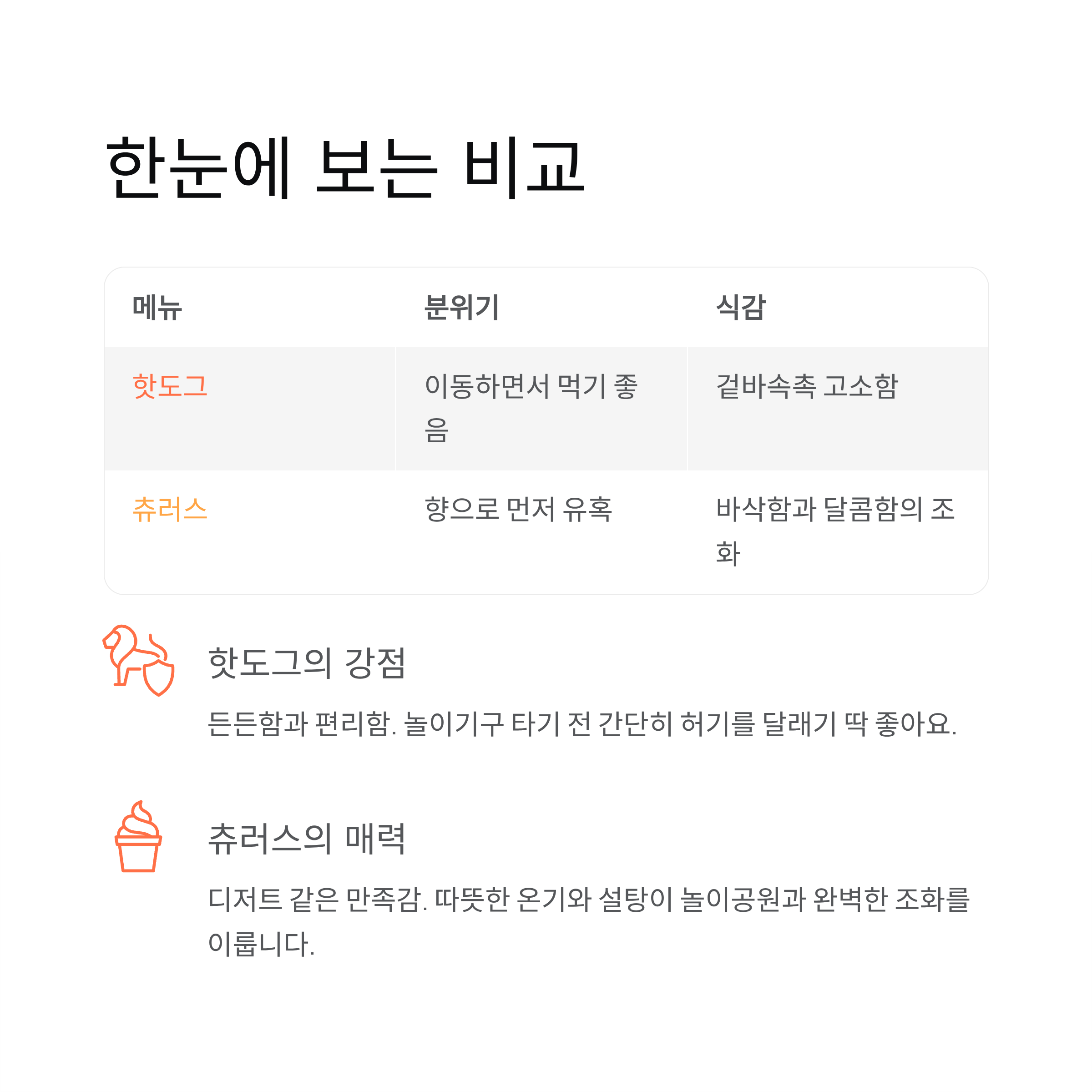 두 간식의 특징을 표로 정리한 한눈 요약