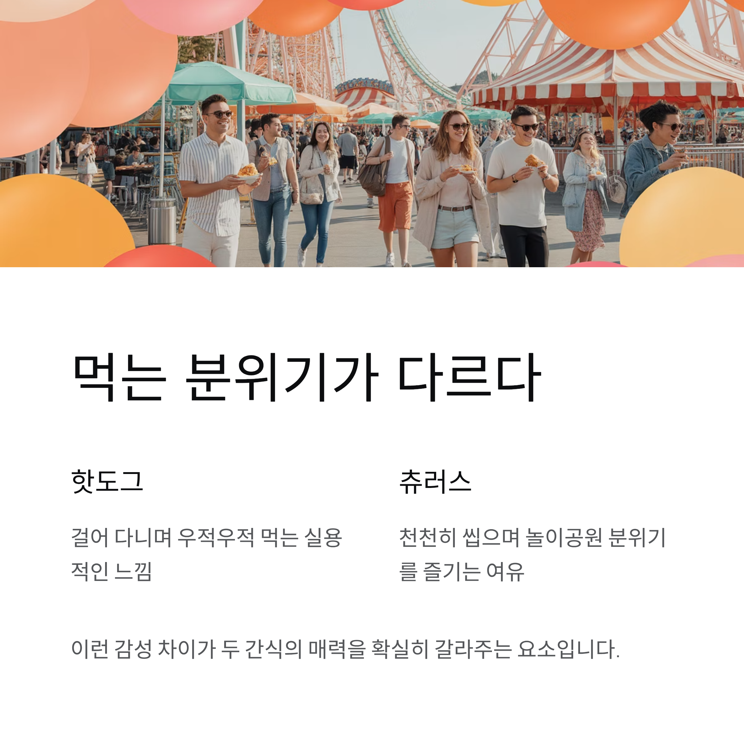 핫도그와 츄러스, 먹는 분위기가 다르다