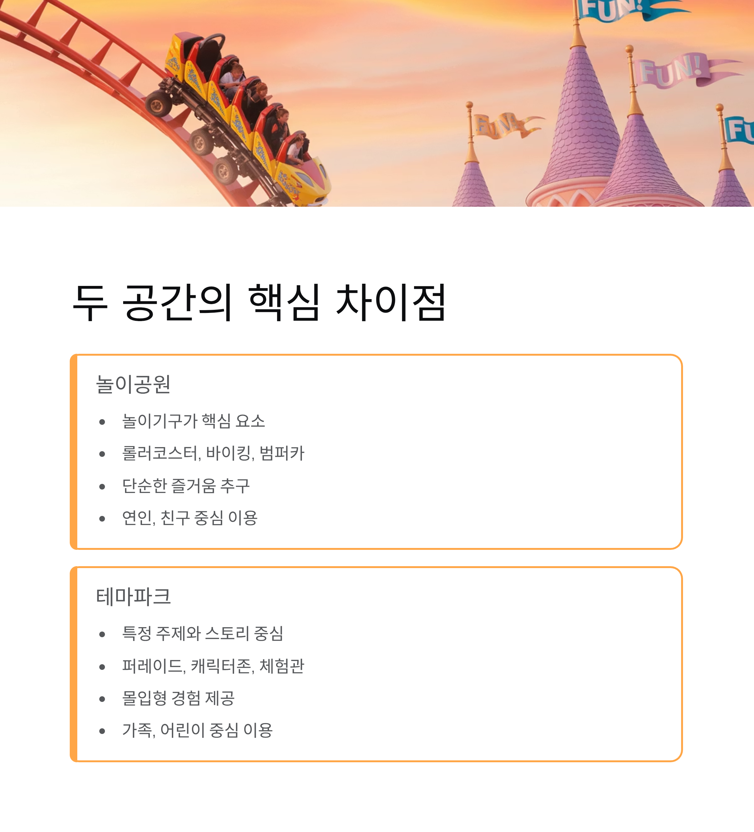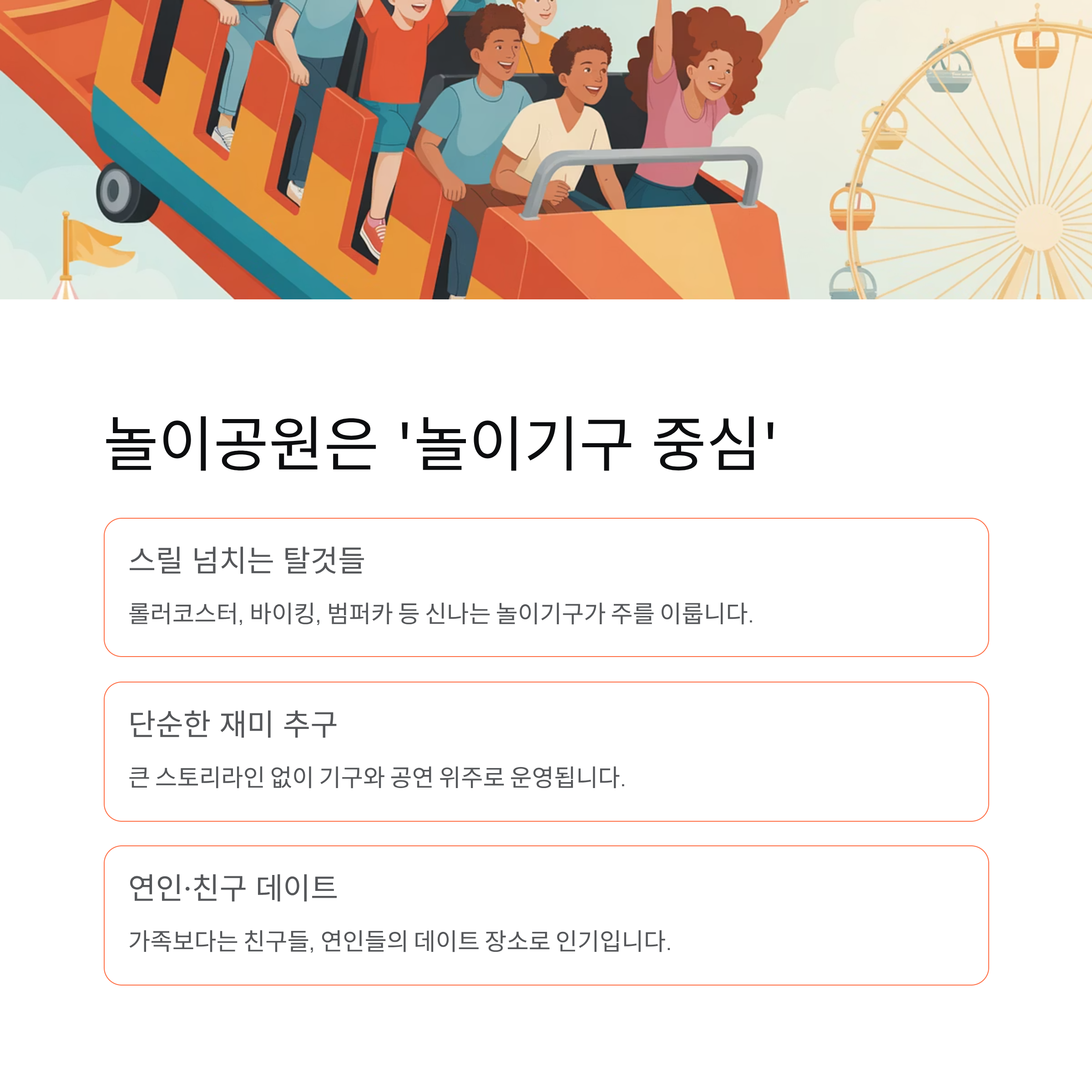 놀이공원과 테마파크는 모두 즐거움을 주지만, 성격은 분명 다릅니다.