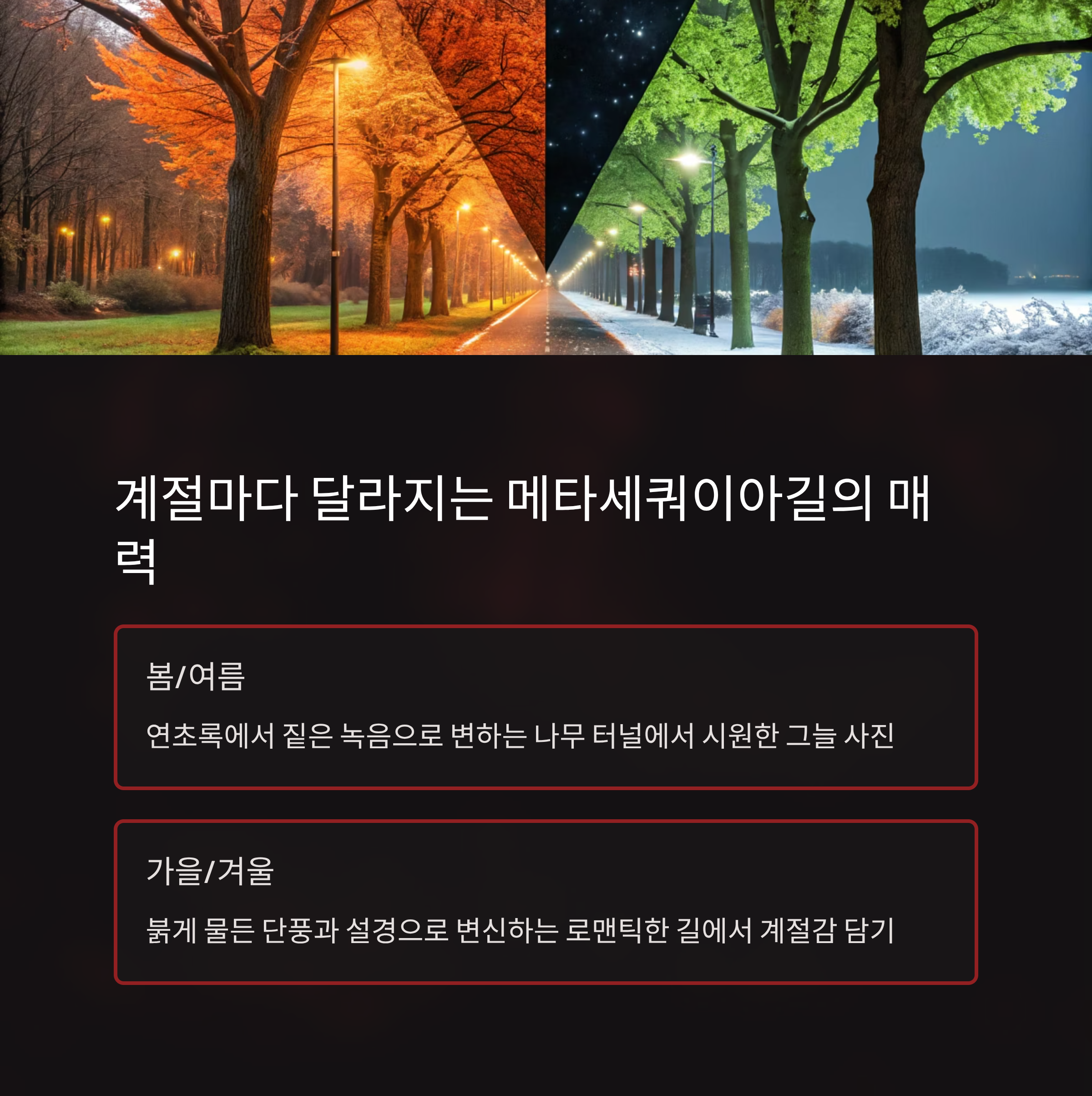 메타세쿼이아길, 계절마다 다른 얼굴을 가진 길