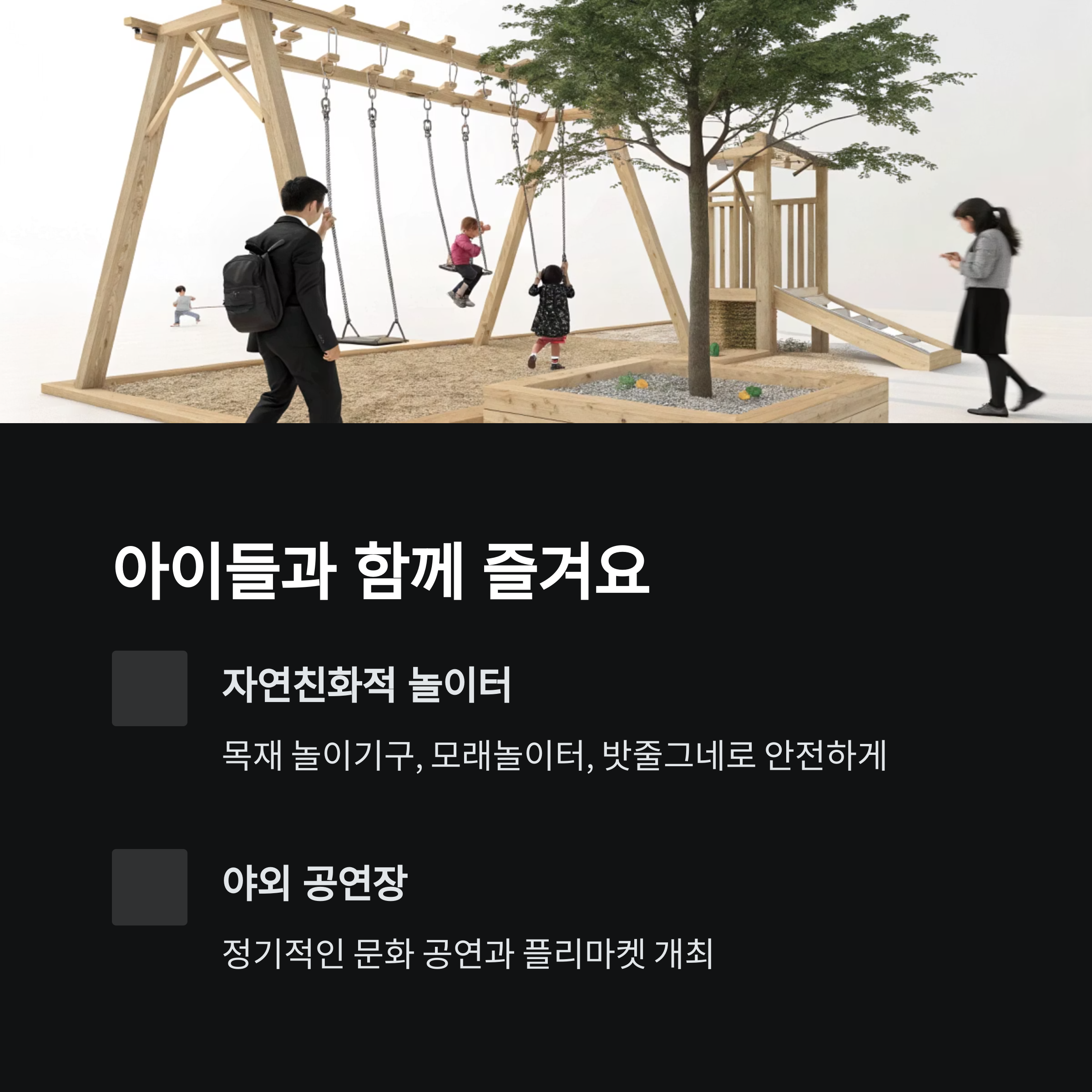 아이들을 위한 놀이터와 문화공간 구성