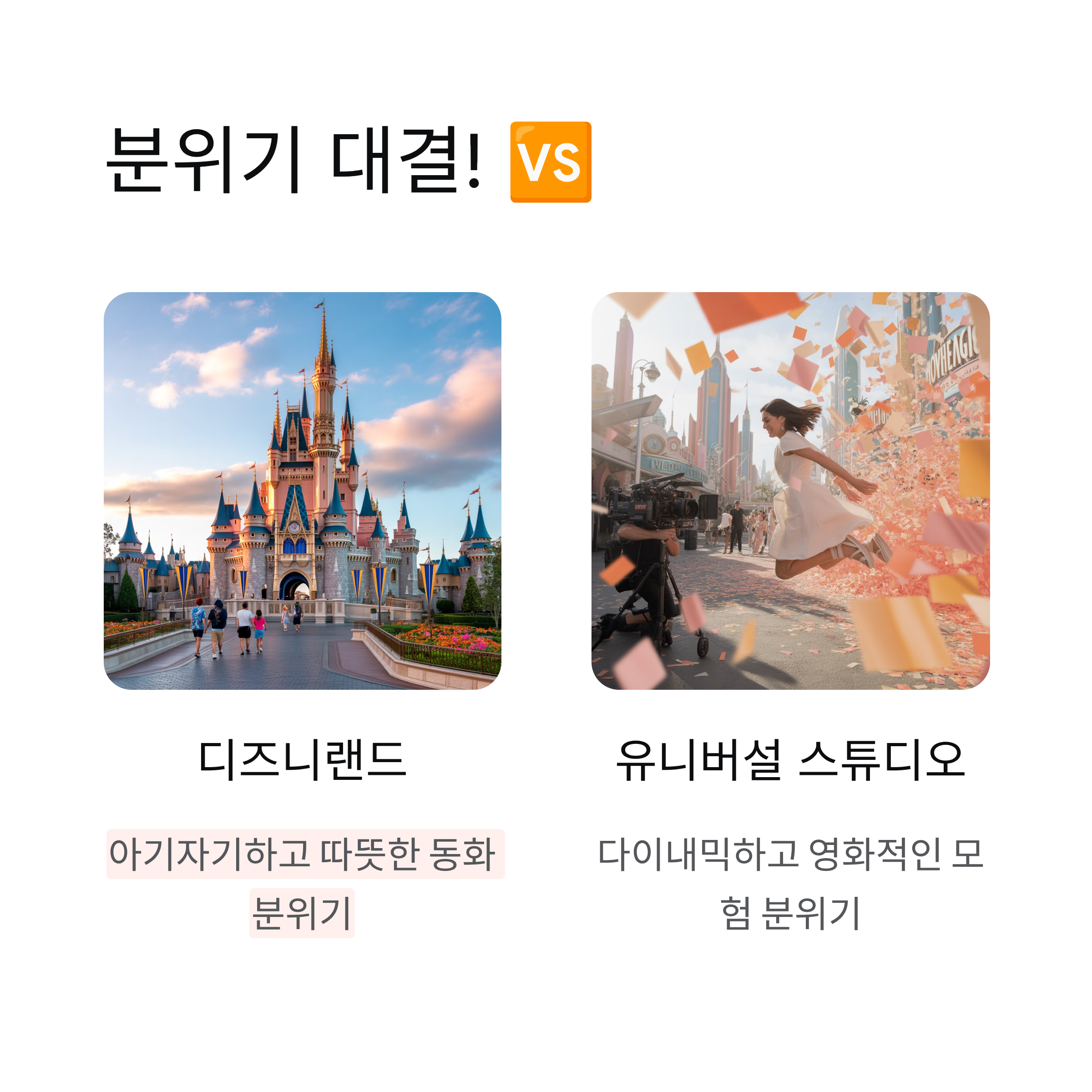 두 테마파크의 매력 비교, 당신의 취향은 어디에 더 가까울까요?