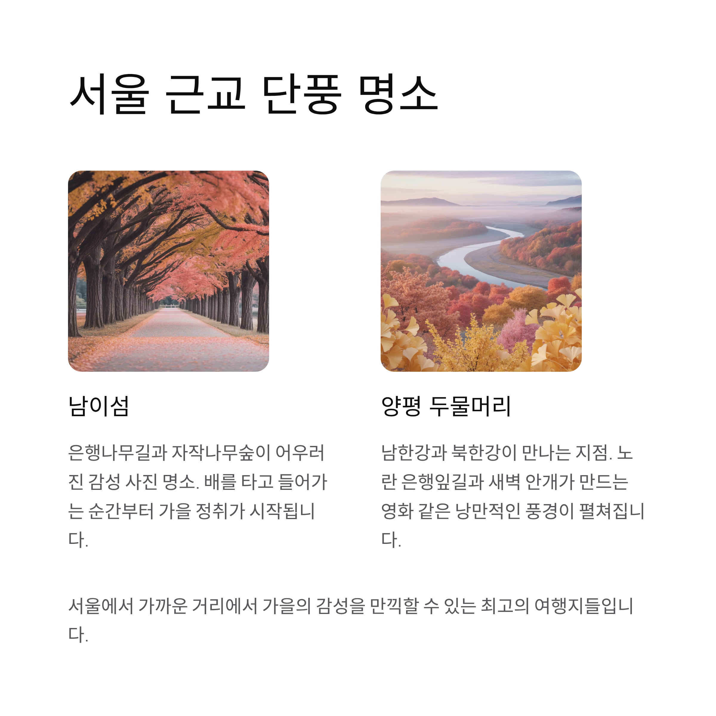 올가을, 단풍의 절정을 놓치지 말고 당신만의 힐링 여행을 떠나보세요.