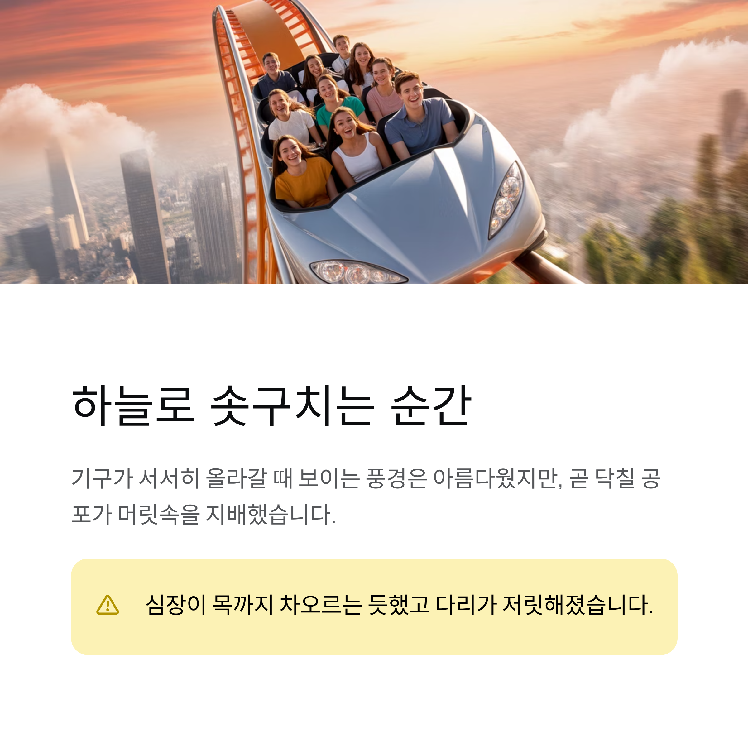 무서운 놀이기구는 눈물과 비명으로 가득했지만, 끝내고 나면 다시 타고 싶어지는 묘한 매력이 있습니다.