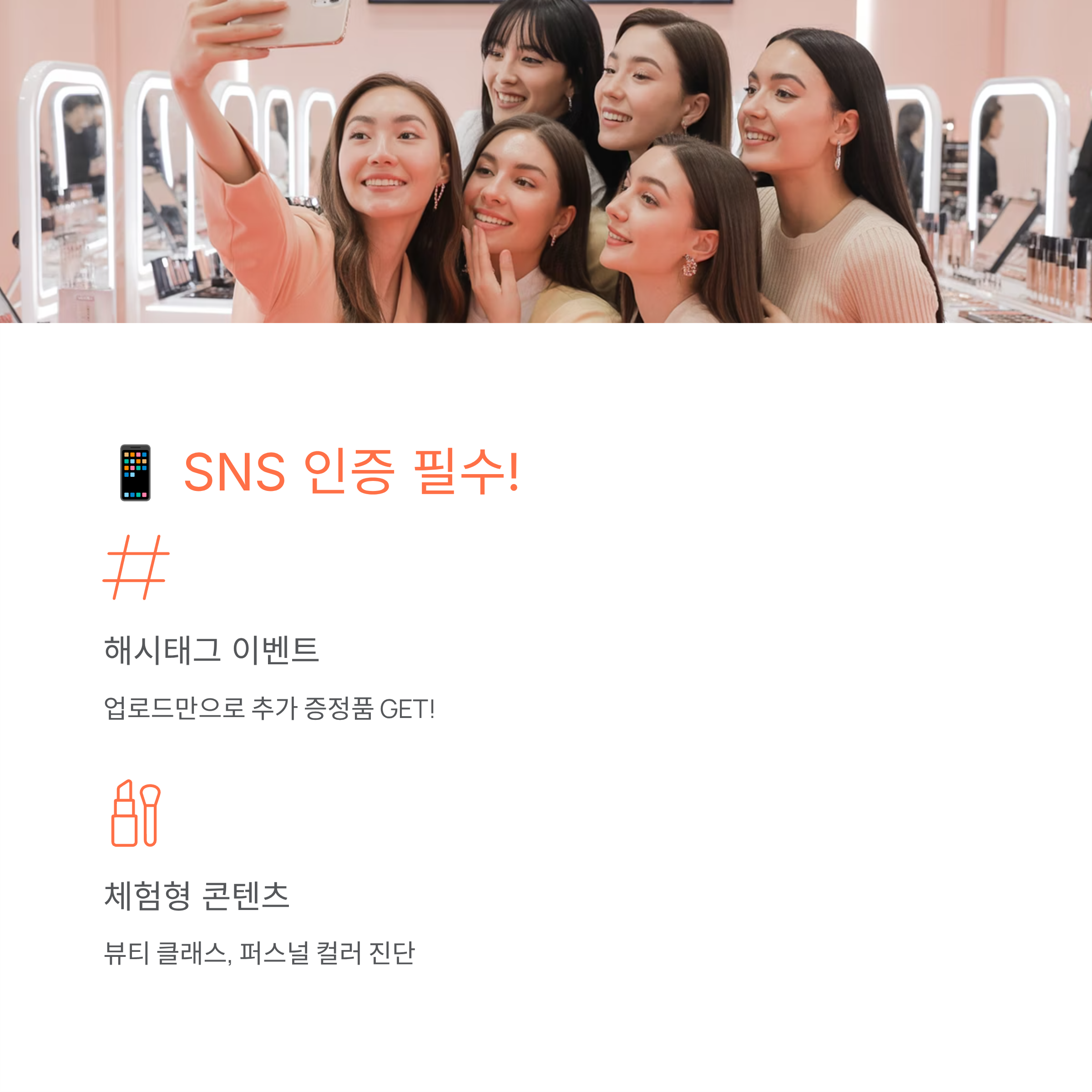 많은 브랜드에서 해시태그 이벤트를 진행해 SNS 업로드만으로도 추가 증정품을 받을 수 있었습니다.