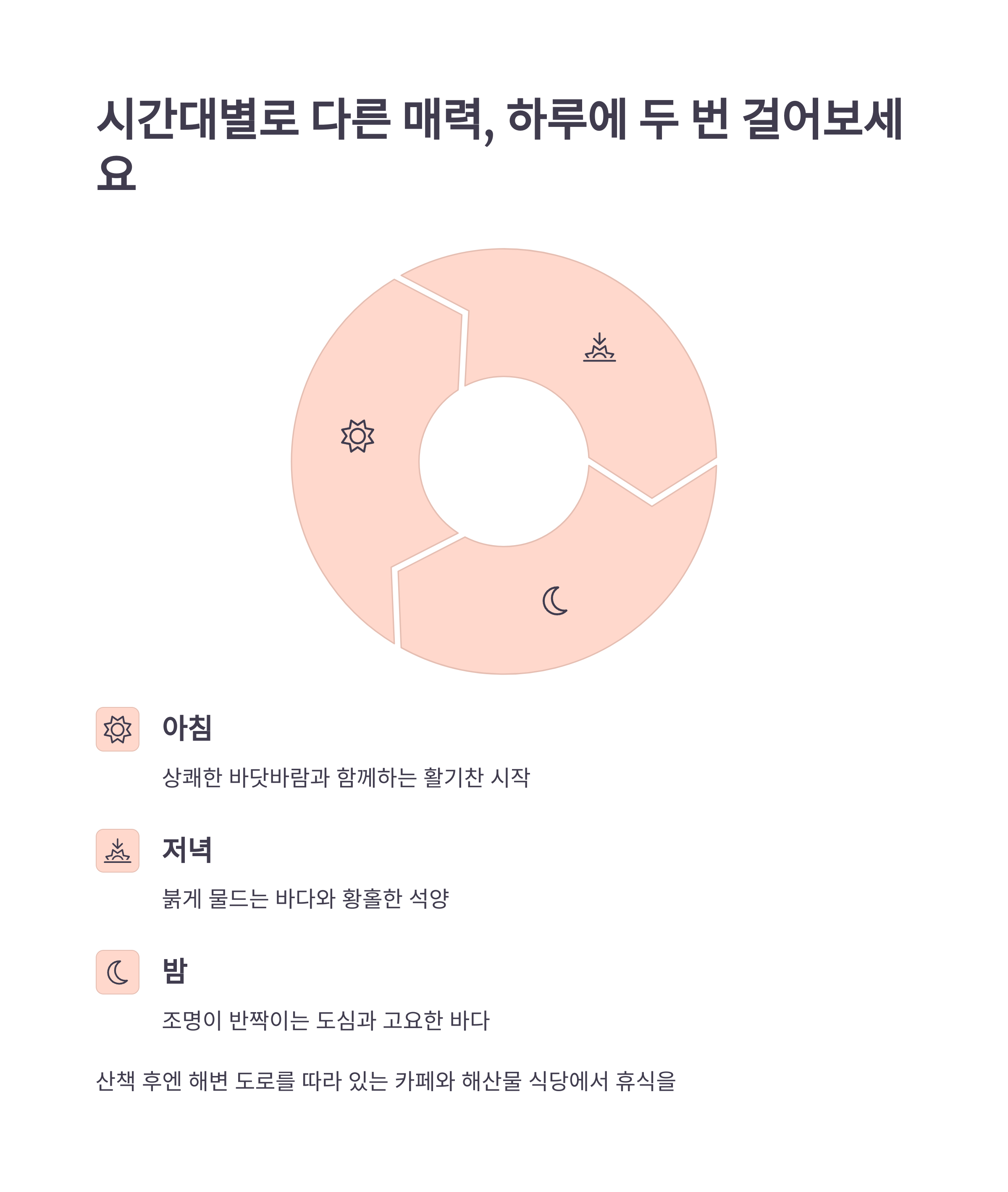 낮에는 햇살과 바닷바람을 맞으며 시원한 산책을,
