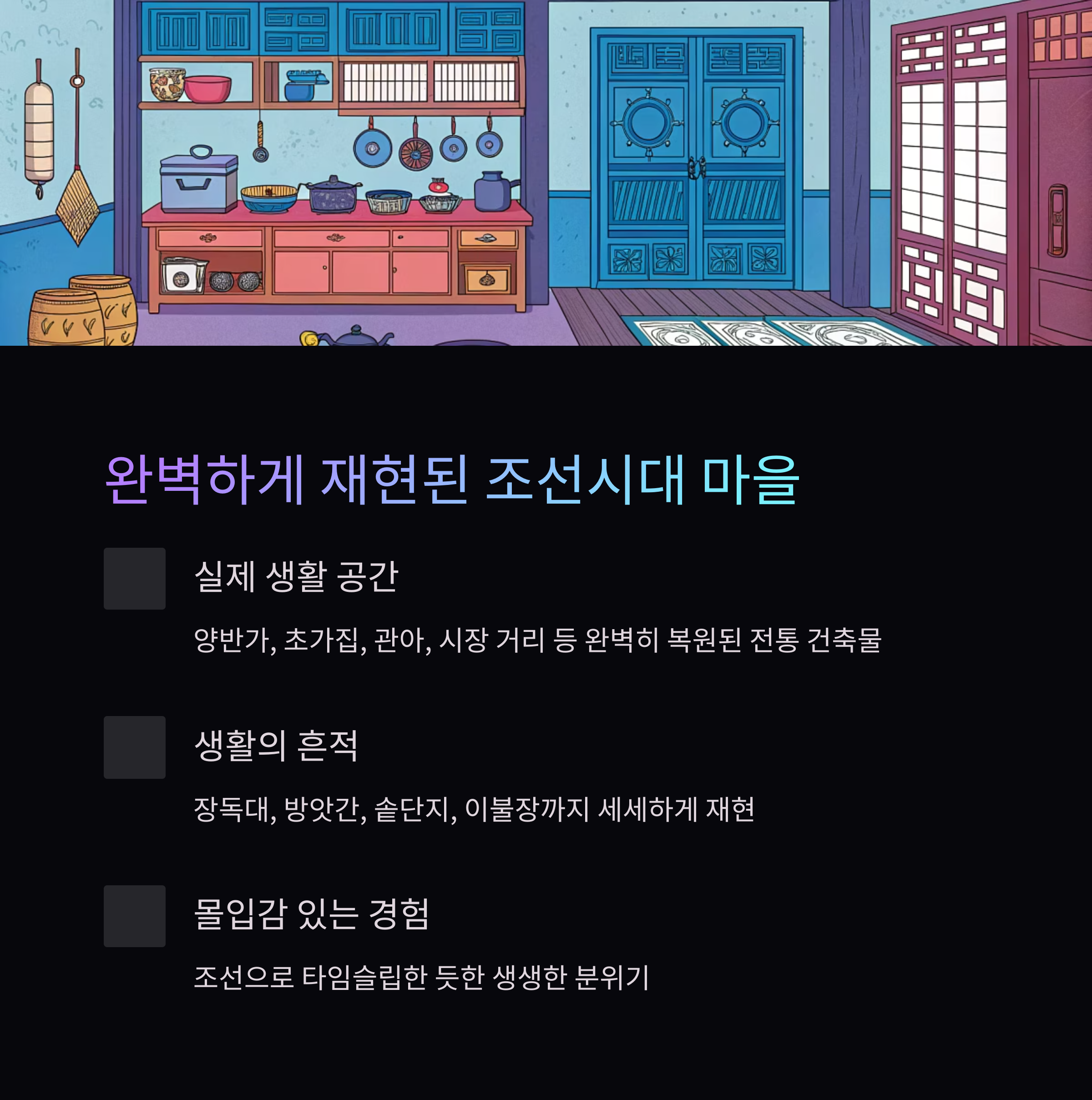 **"조선으로 타임슬립한 듯한 몰입감"**을 주는 가장 큰 이유이기도 합니다.