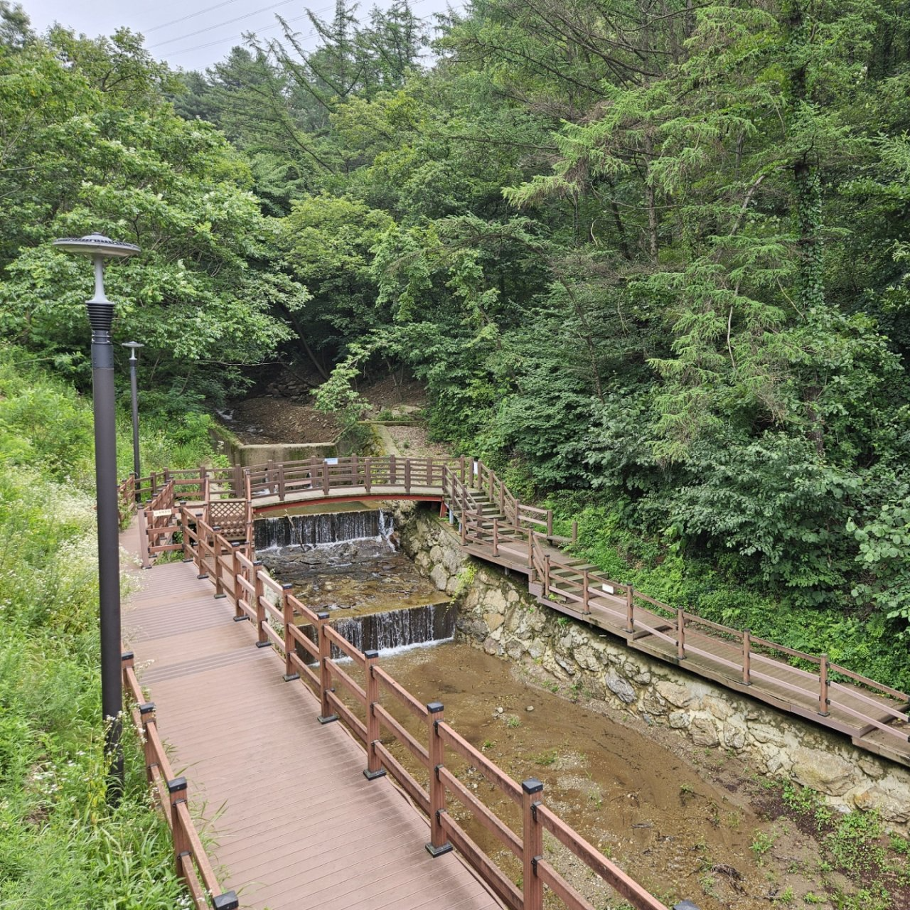 나무 계단 산책로와 산림욕장, 통나무 숙소, 야영장이 잘 정비되어 있습니다.