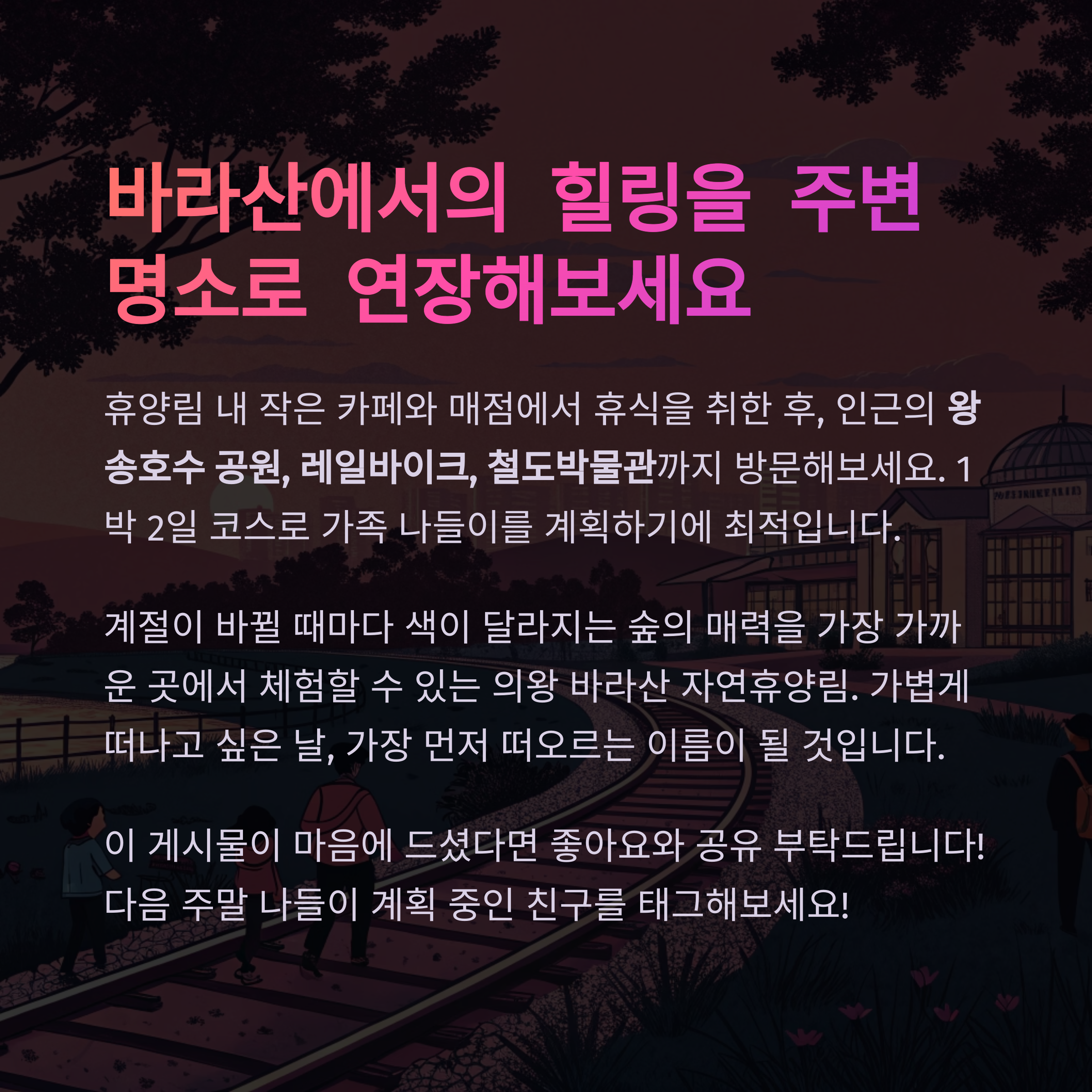 숲속 힐링부터 가족 체험까지, 의왕에서 만나는 조용한 자연의 품