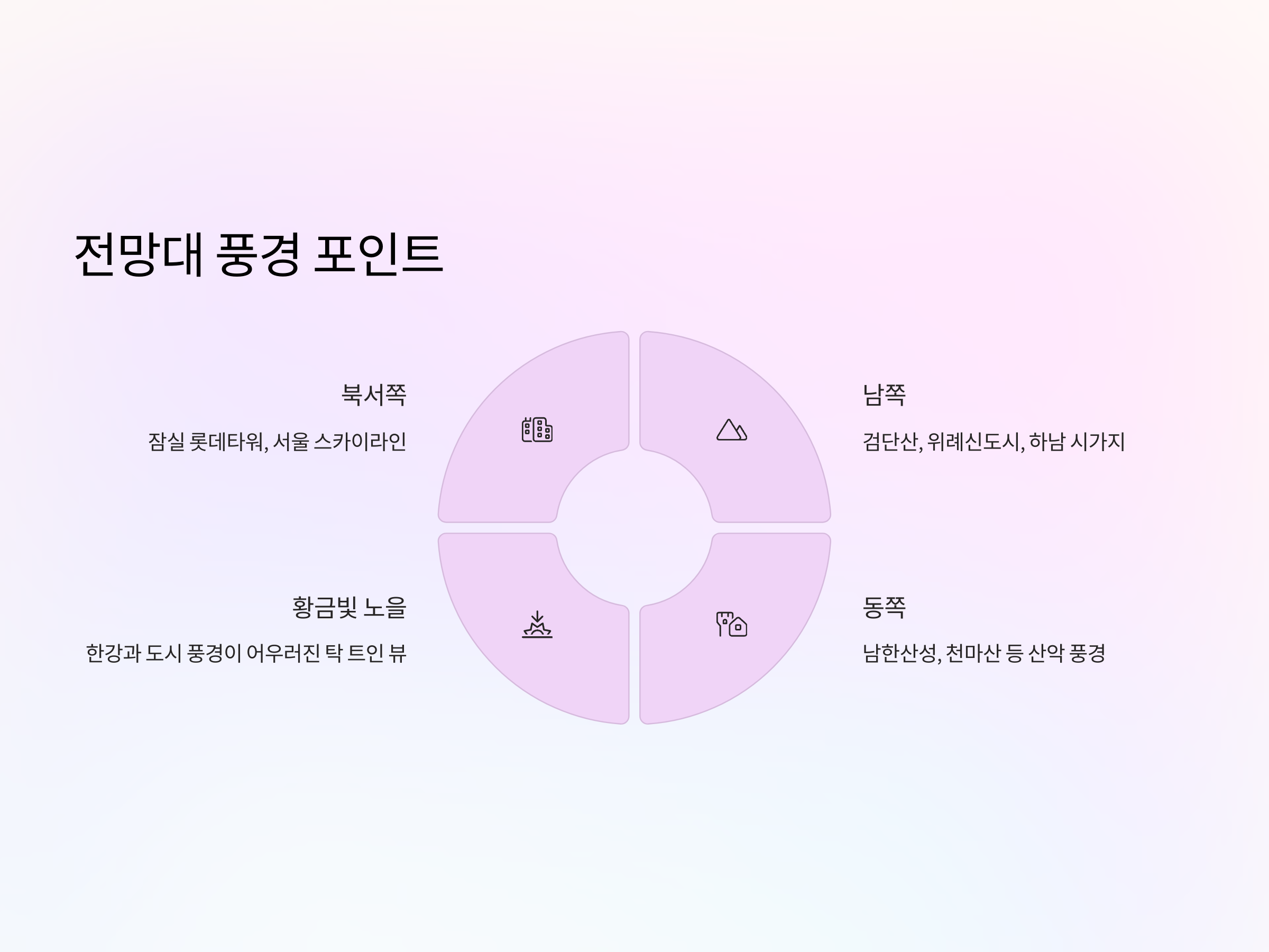 | 북서쪽 | 잠실 롯데타워, 서울스카이라인 |