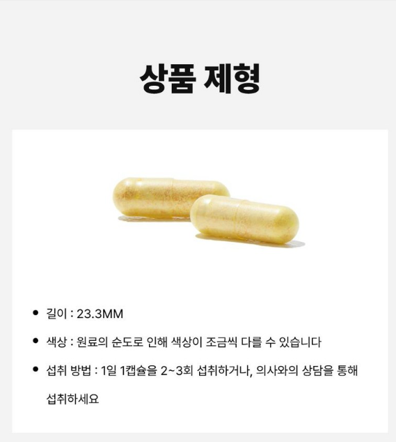 또 캡슐이라서 알약을 잘 못 삼키는 분들에게는 조금 불편할 수도 있습니다. 다만 대부분의 영양제가 캡슐 형태라 큰 단점이라고 보기는 어려울 것 같습니다.