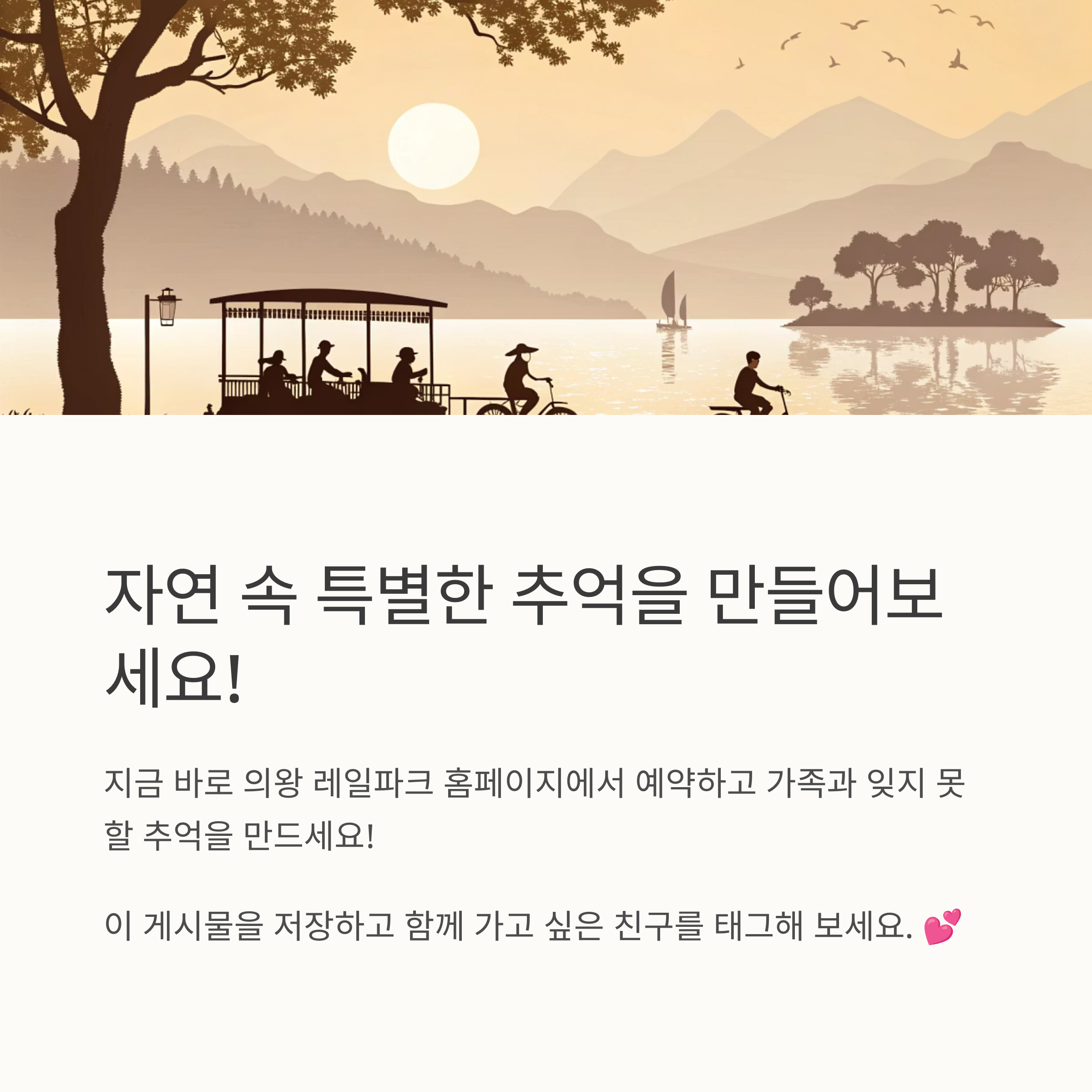 의왕 왕송호수 레일바이크는 자연과 함께하는 특별한 체험을 제공하여 아이들과 함께하는 가족 나들이에 최적의 장소입니다. 사전 예약을 통해 원활한 이용을 권장드립니다.