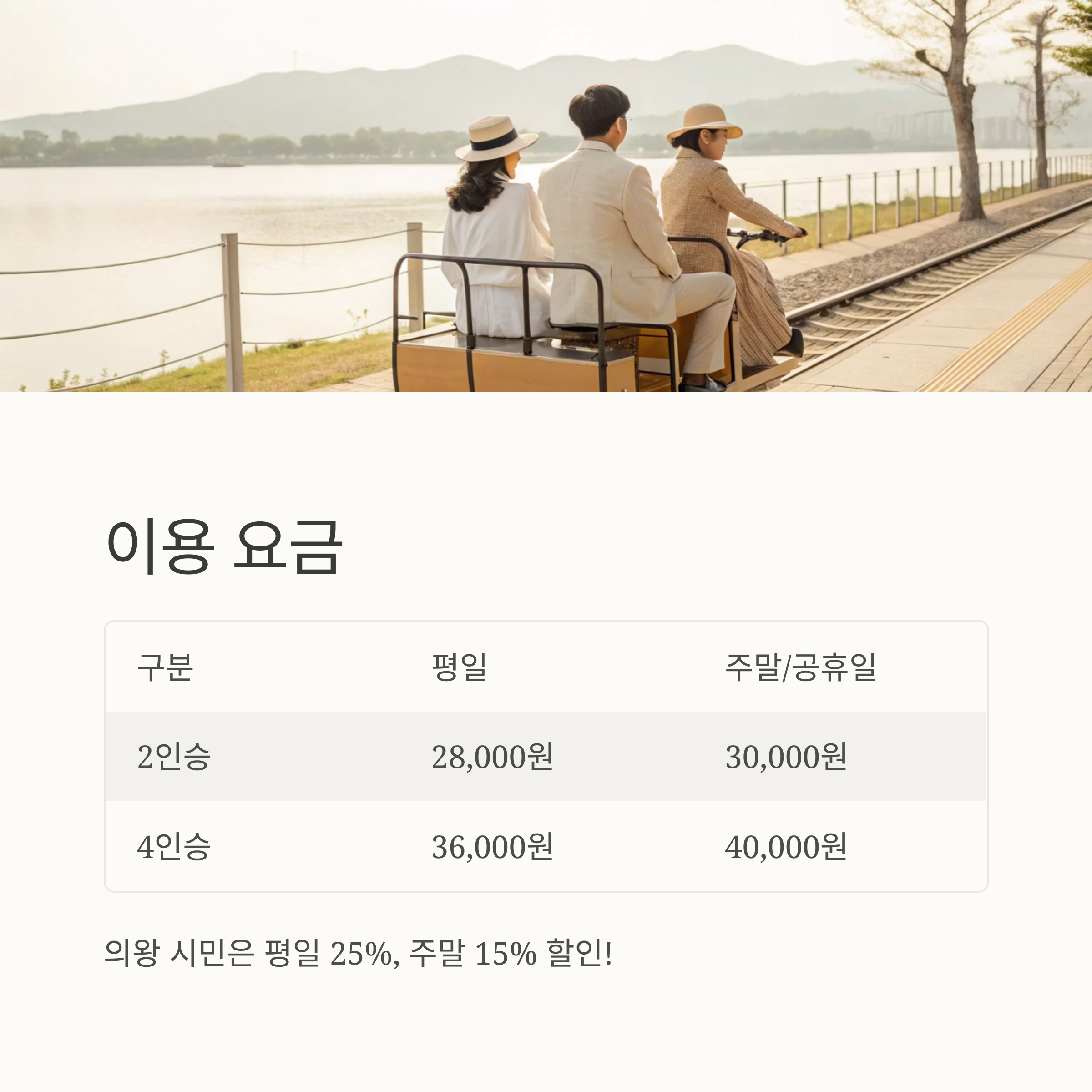 | 2인승 | 28,000원 | 30,000원 |